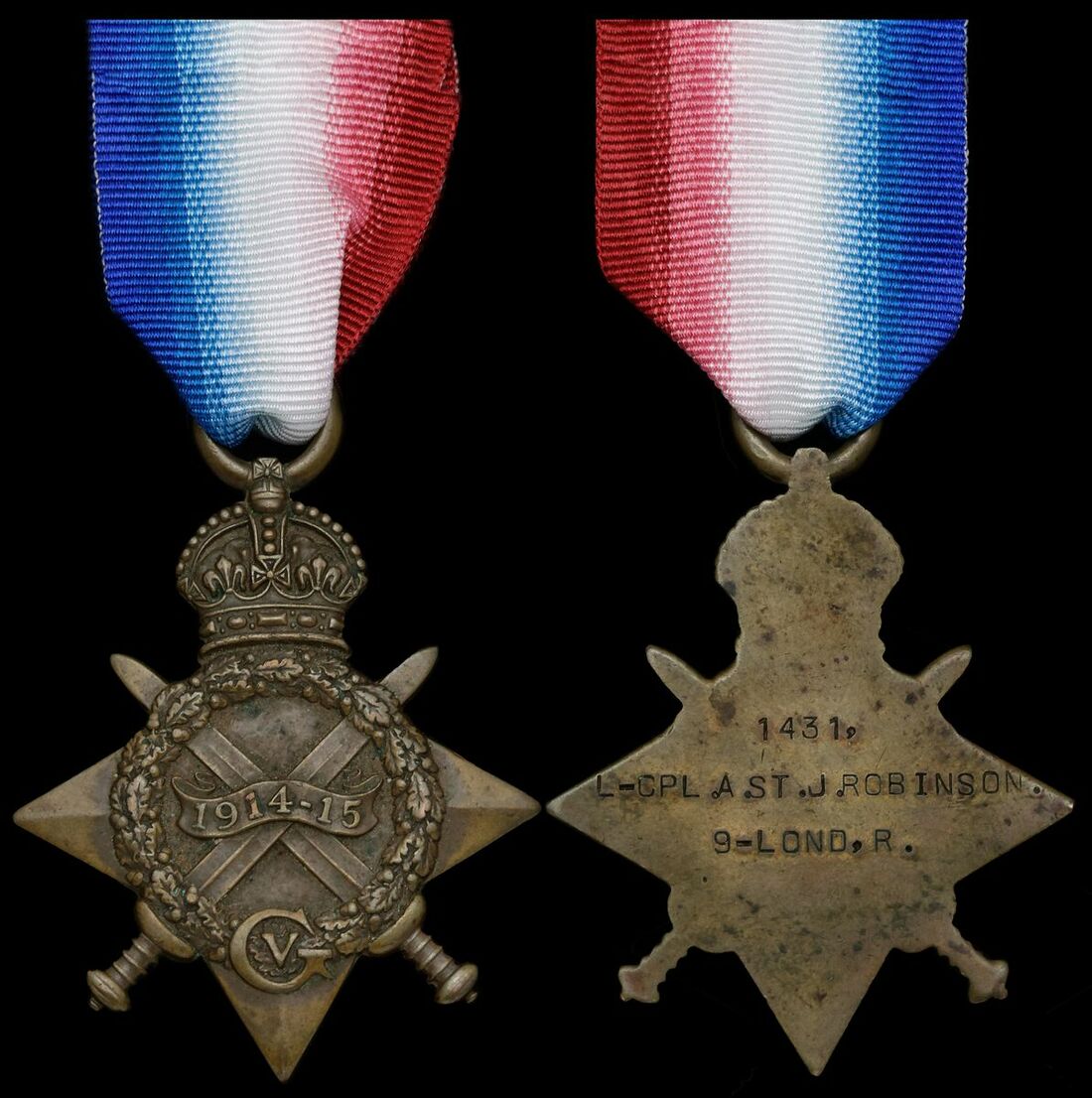 1914-15 Star (1431, L-Cpl. A. St. J. Robinson. 9-Lond, R.), very fine