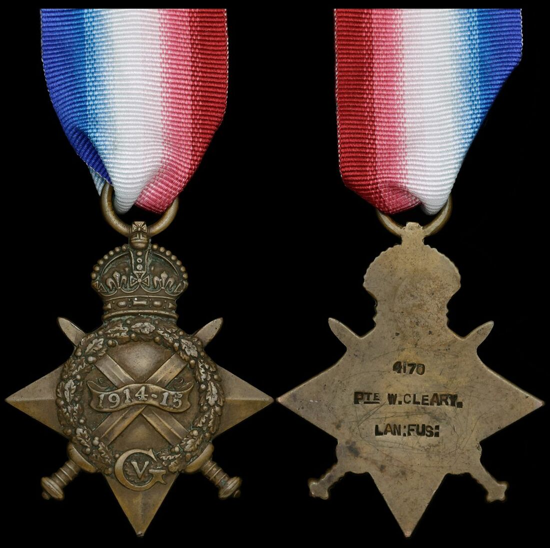 1914-15 Star (4170 Pte W. Cleary. Lan: Fus:), slight scratching around naming, otherwise very fine