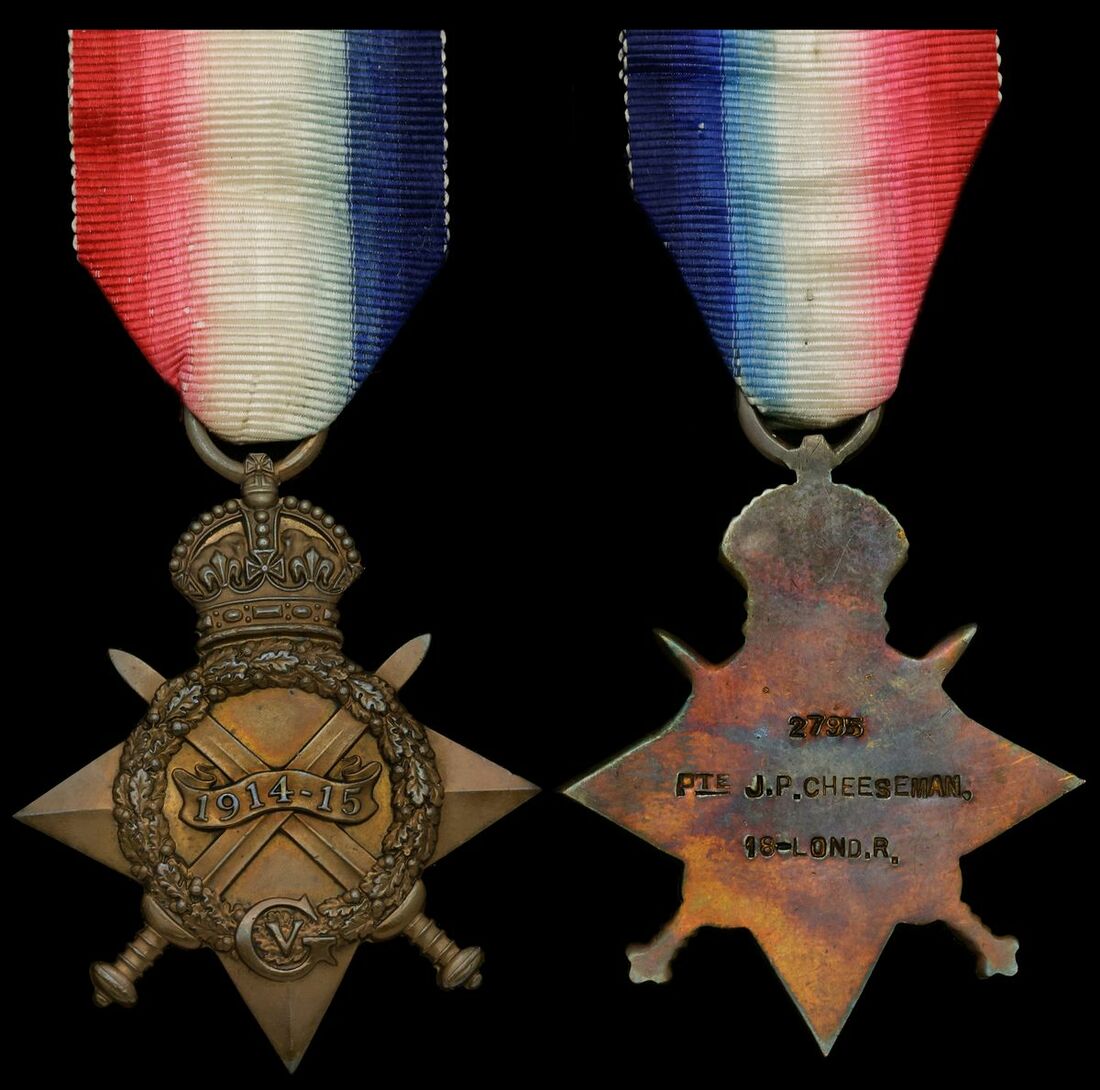 1914-15 Star (2795 Pte J. P. Cheeseman. 18-Lond. R.), good very fine