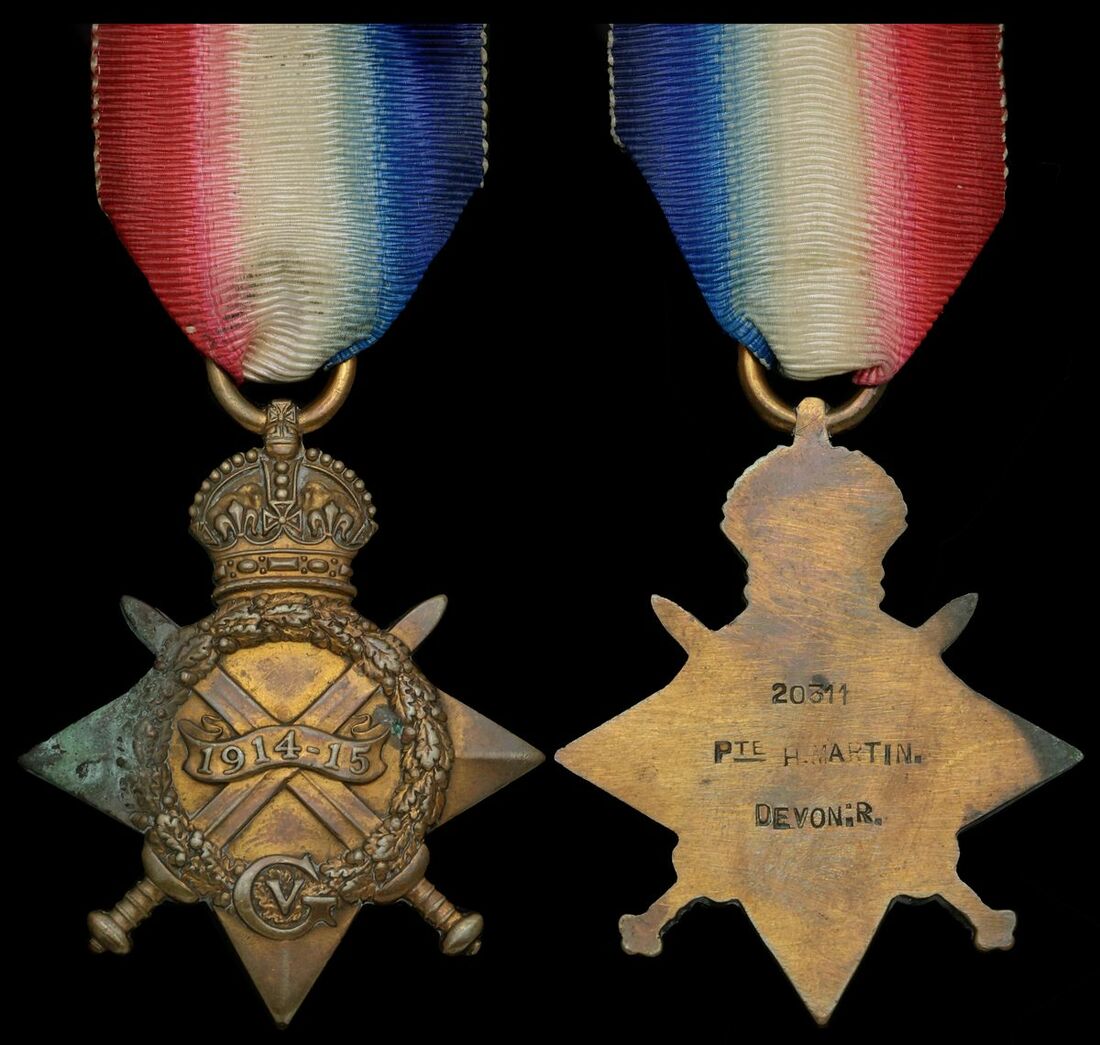 1914-15 Star (20311 Pte H. Martin. Devon: R.), attempted erasure, very fine