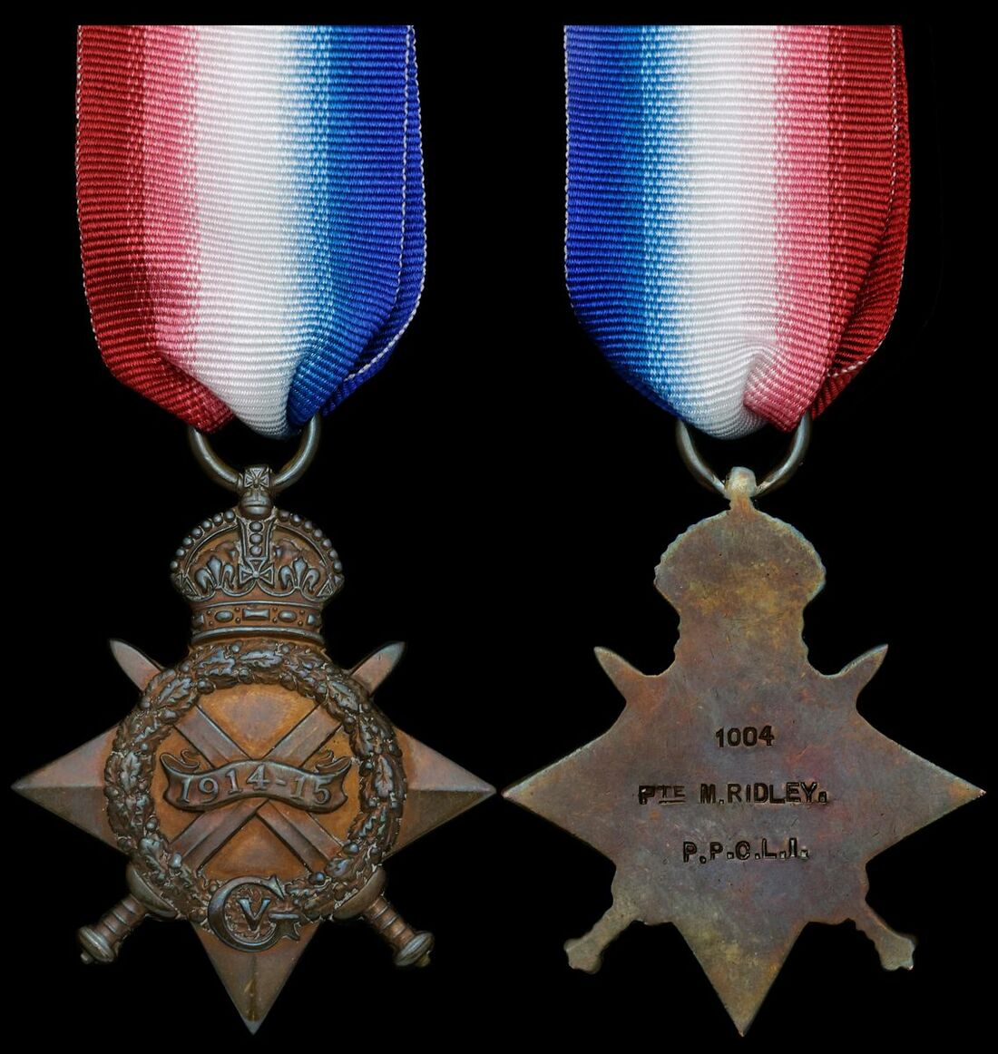 1914-15 Star (1004 Pte M. Ridley. P.P.C.L.I.), good very fine