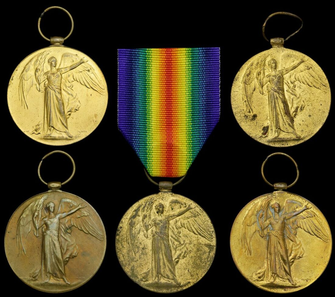 Victory Medal 1914-19 (5), (J.14367 H. Portwine. A.B. R.N.), (K.2360 P. J. Farrell. S.P.O. R.N.); (289689 T. Cooper. Mech. R.N.); (M.30652 F. Williams. Act. E.R.A.4 R.N.); (M.X.3234 A.B. R.N.V.R.), overall very fine (5)