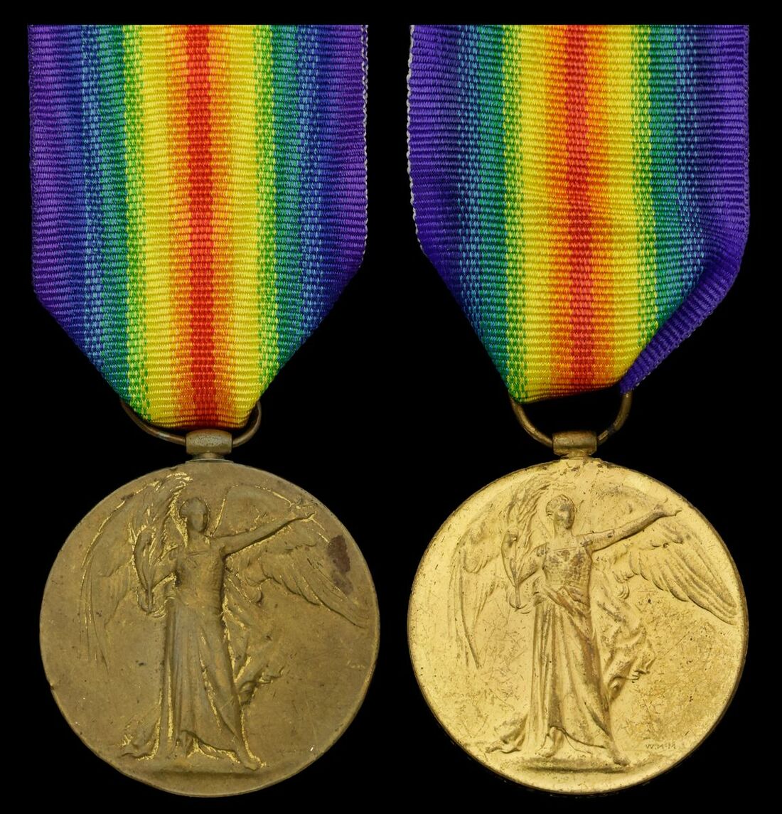 Victory Medal 1914-19 (200499 A.Cpl. E. L. Wood. E. Surr. R.; 78949 Pte. G. Stokes. E. Surr. R.), the first good very fine, the second with contact marks and light edge bruising overall (2)