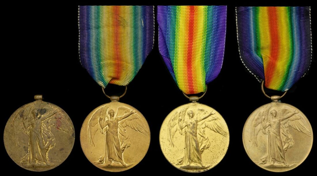 Victory Medal 1914-19 (4) (38300 Pte. W. Evans. Som. L. I.; 33782 Pte. H. F. Hills. North'n R.; G-74334 Pte F. G. Wagner. Midd'x R.; 12079 Pte. T. Horne. S.Staff.R.), the last missing suspension ring, otherwise very fine (4)