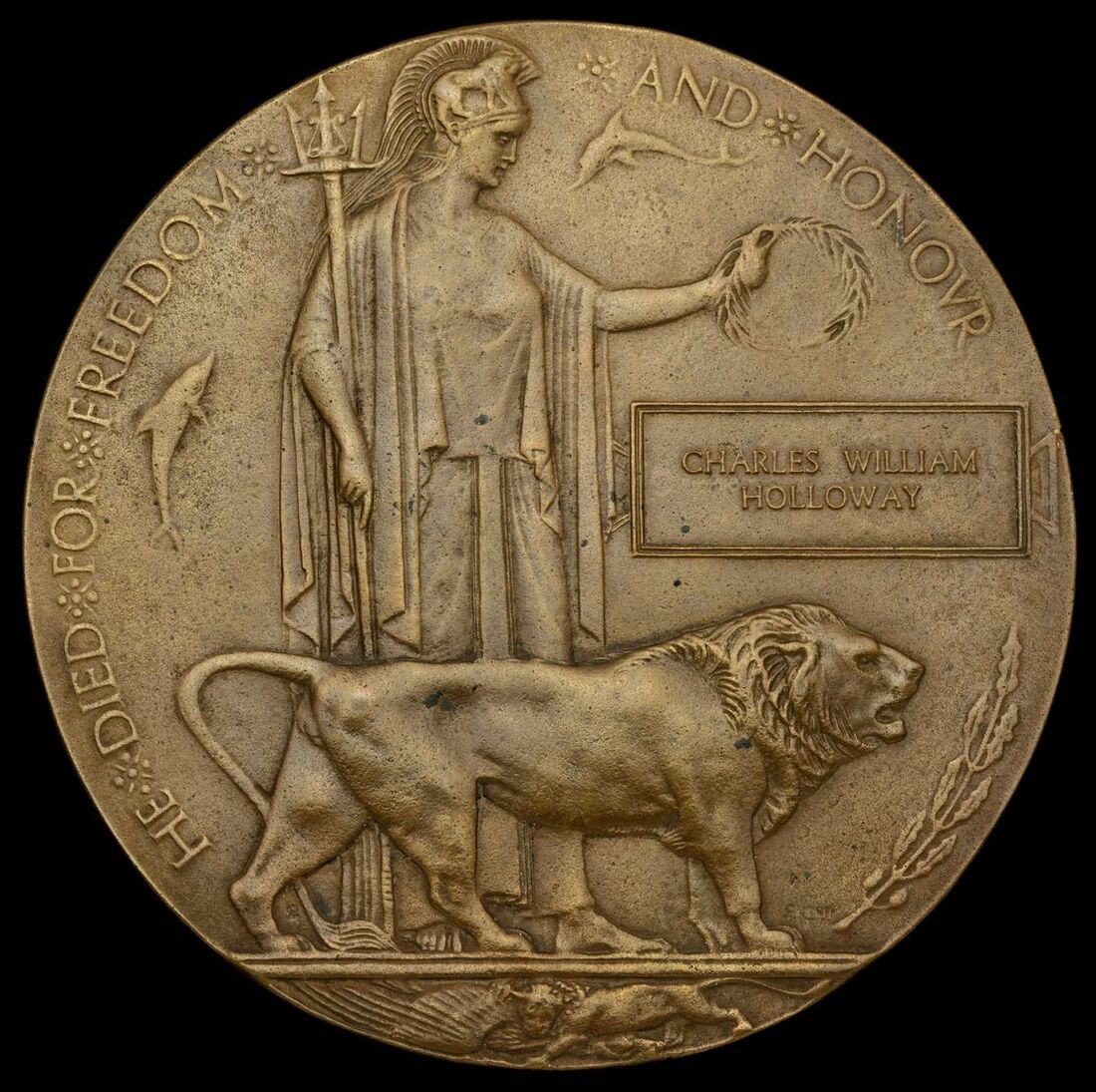 Great War Bronze Memorial Plaque (Charles William Holloway), good very fine with glue to reverse