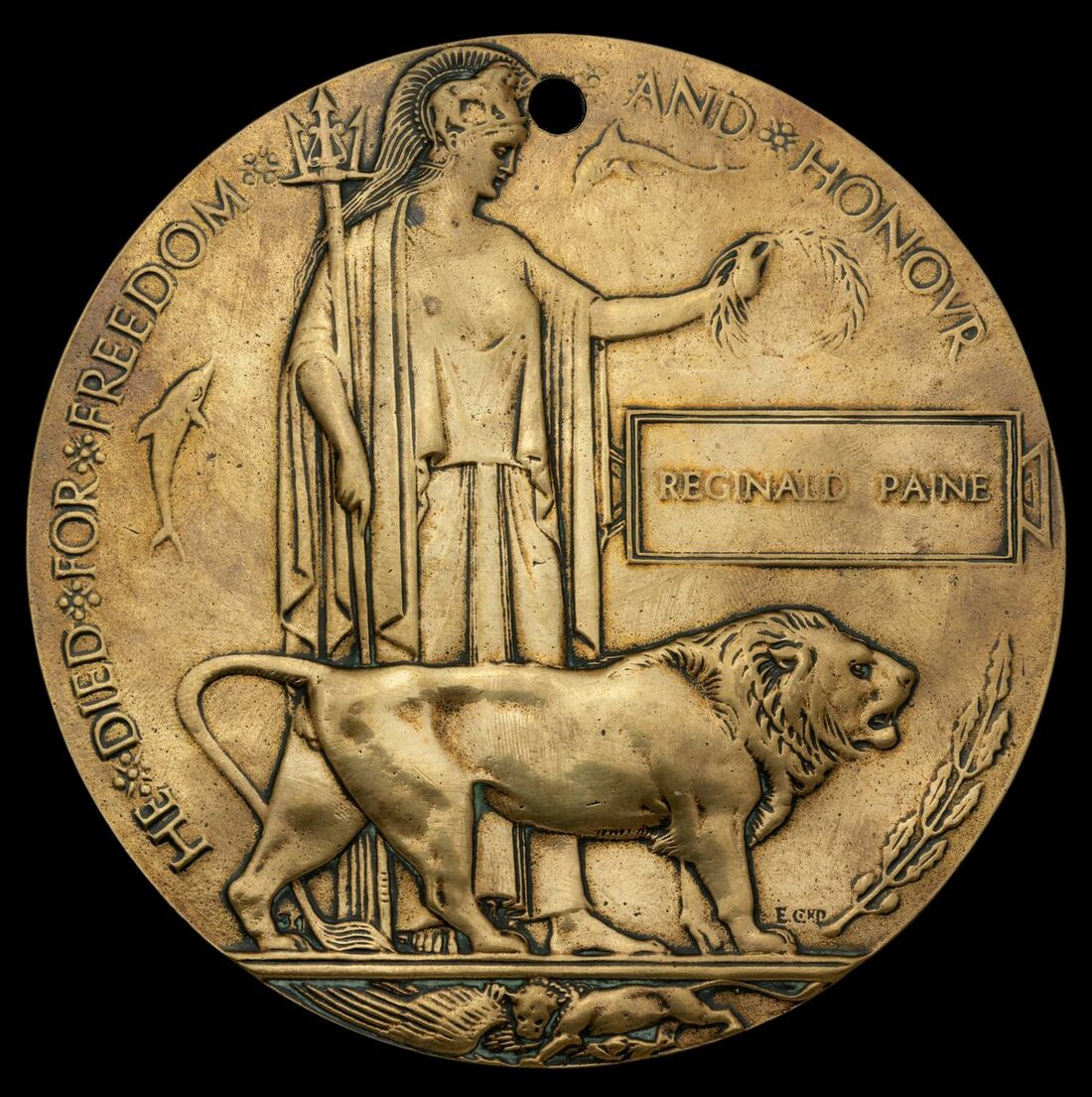 Great War Bronze Memorial Plaque (Percival Paine; Reginald Paine), both with large hole drilled at 12 o'clock, polished good fine (2)