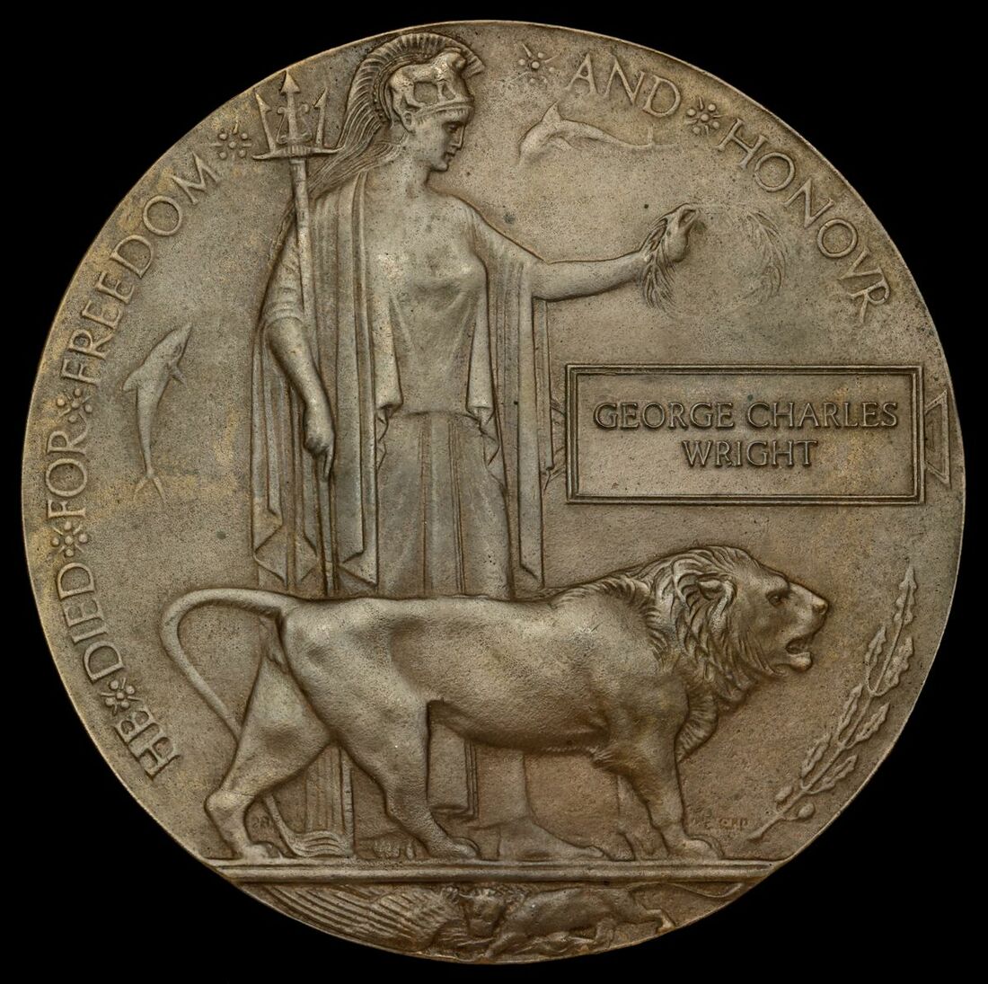 Great War Bronze Memorial Plaque (George Charles Wright), some scratching on the reverse, otherwise good very fine