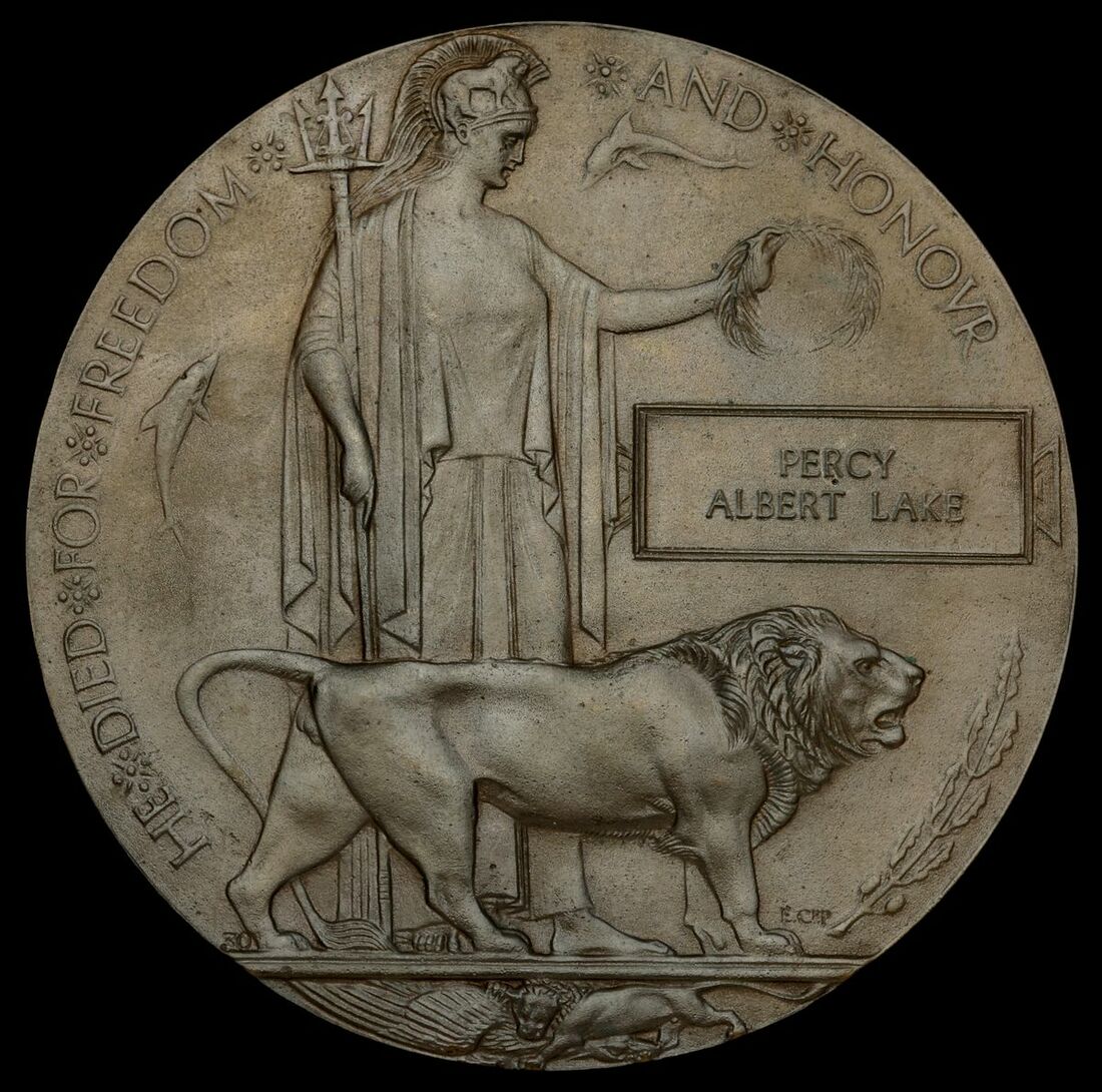 Great War Bronze Memorial Plaque (Percy Albert Lake), good very fine