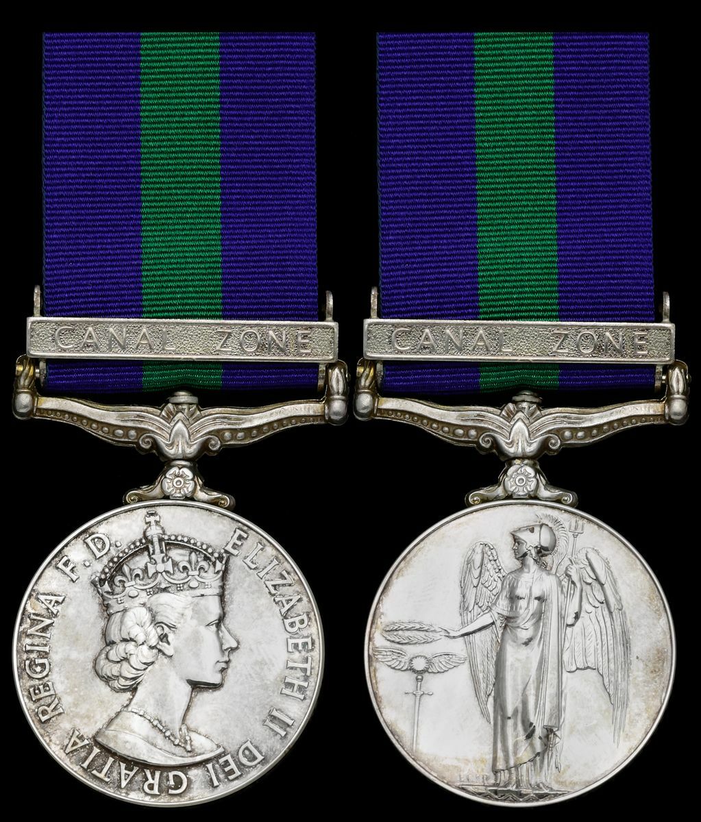 General Service 1918-62, 1 clasp, Canal Zone (22637796 Cfn K S Walker REME), in card box of issue with a divisional badge, extremely fine