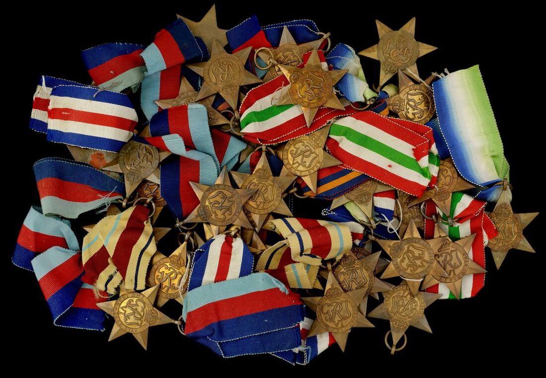 1939-45 Star (13); Atlantic Star (4), one with France and Germany clasp; Africa Star (6); Burma Star (2); Italy Star (4); France and Germany Star (6), very fine (35)