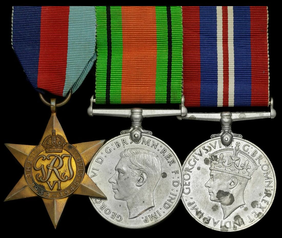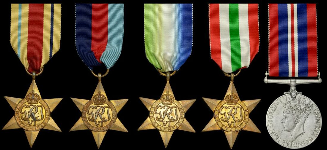 1939-45 Star; Atlantic Star; Africa Star; Italy Star; War Medal 1939-45, with Admiralty slip for the medals and with card box of issue, all details removed, together with a further 1939-45 Star; Defence and War Medals 1939-45, these mounted as worn, very fine (8)