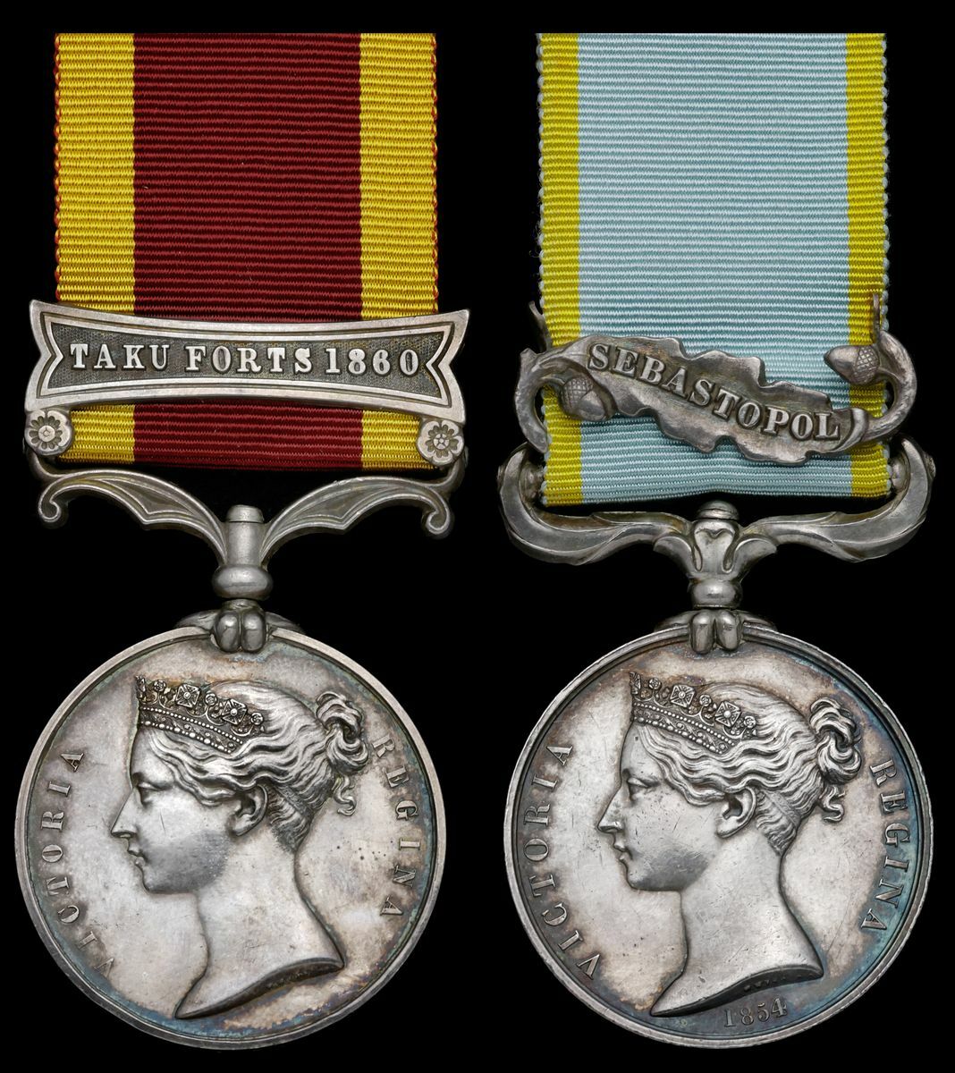 Crimea 1854-56, 1 clasp, Sebastopol (D. A. Comy R. O. Day. F. T. Dept R.A.); China 1857-60, 1 clasp Taku Forts 1860 (Depy Supt of Stores R. O. Day.), minor contact wear, overall very fine (2)