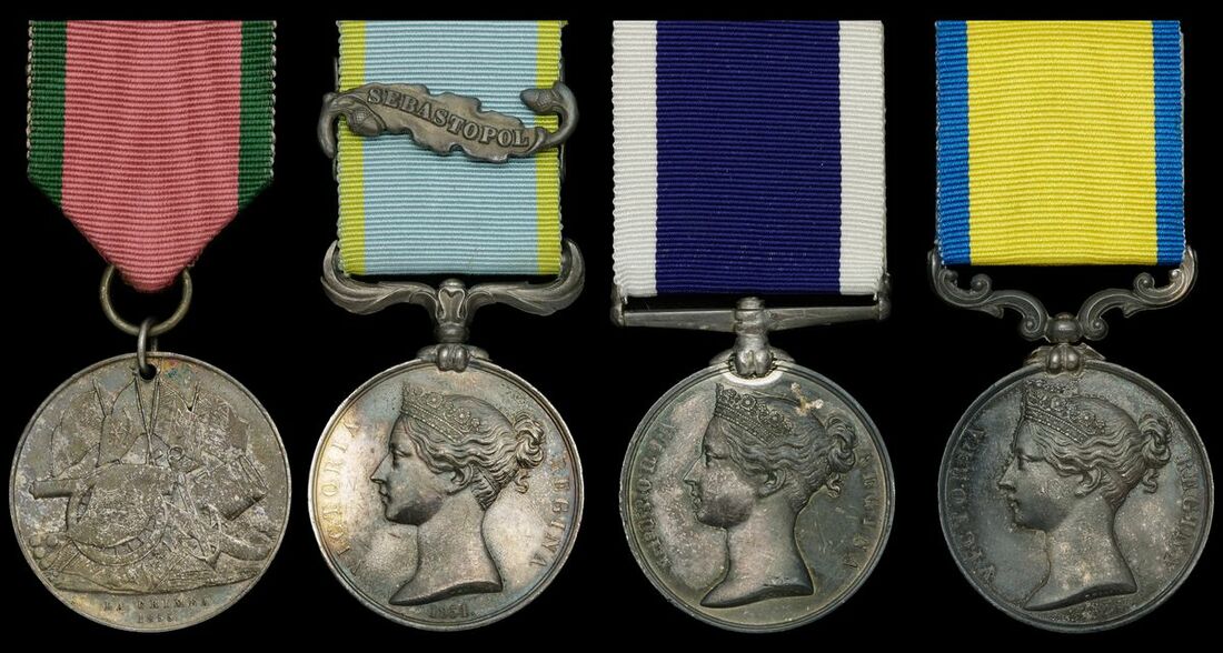 Crimea 1854-56, 1 clasp loose upon riband, Sebastopol, unnamed as issued; Baltic 1855, unnamed as issued; Turkish Crimea 1855, Sardinian die; Royal Navy L.S. & G.C., V.R., narrow suspension (George. Morgan. Chf. Mtmn. in Chge. H.M. Coast Gd.), engraved naming, good very fine (4)