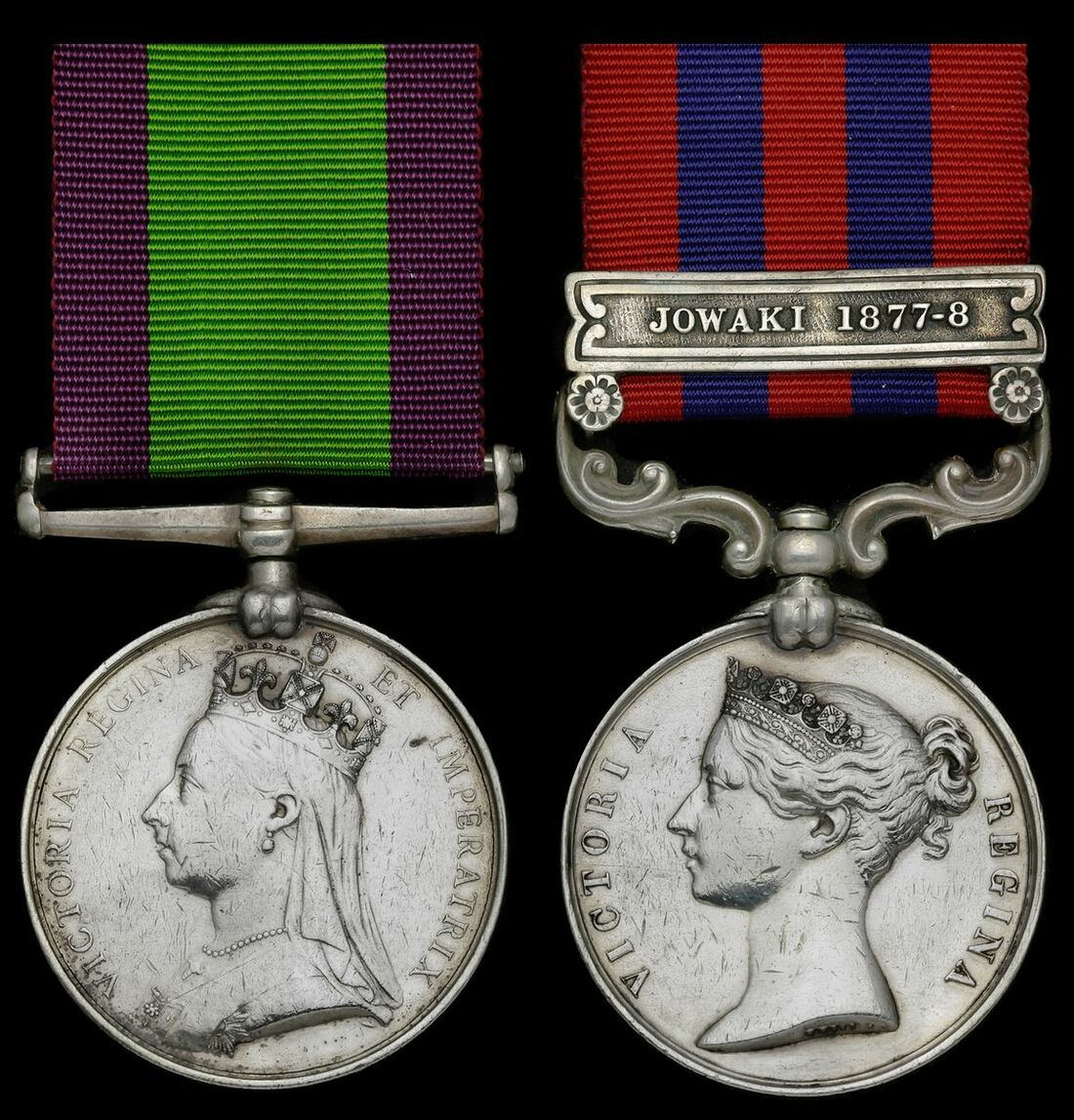 India General Service 1854-95 1 clasp, Jowaki (394 Pte Peter Cassretto. 2/9th Foot.); Afghanistan 1878-80, no clasp (394. Pte. P. Cassretto. 2/9th Foot.), contact marks, nearly very fine (2)