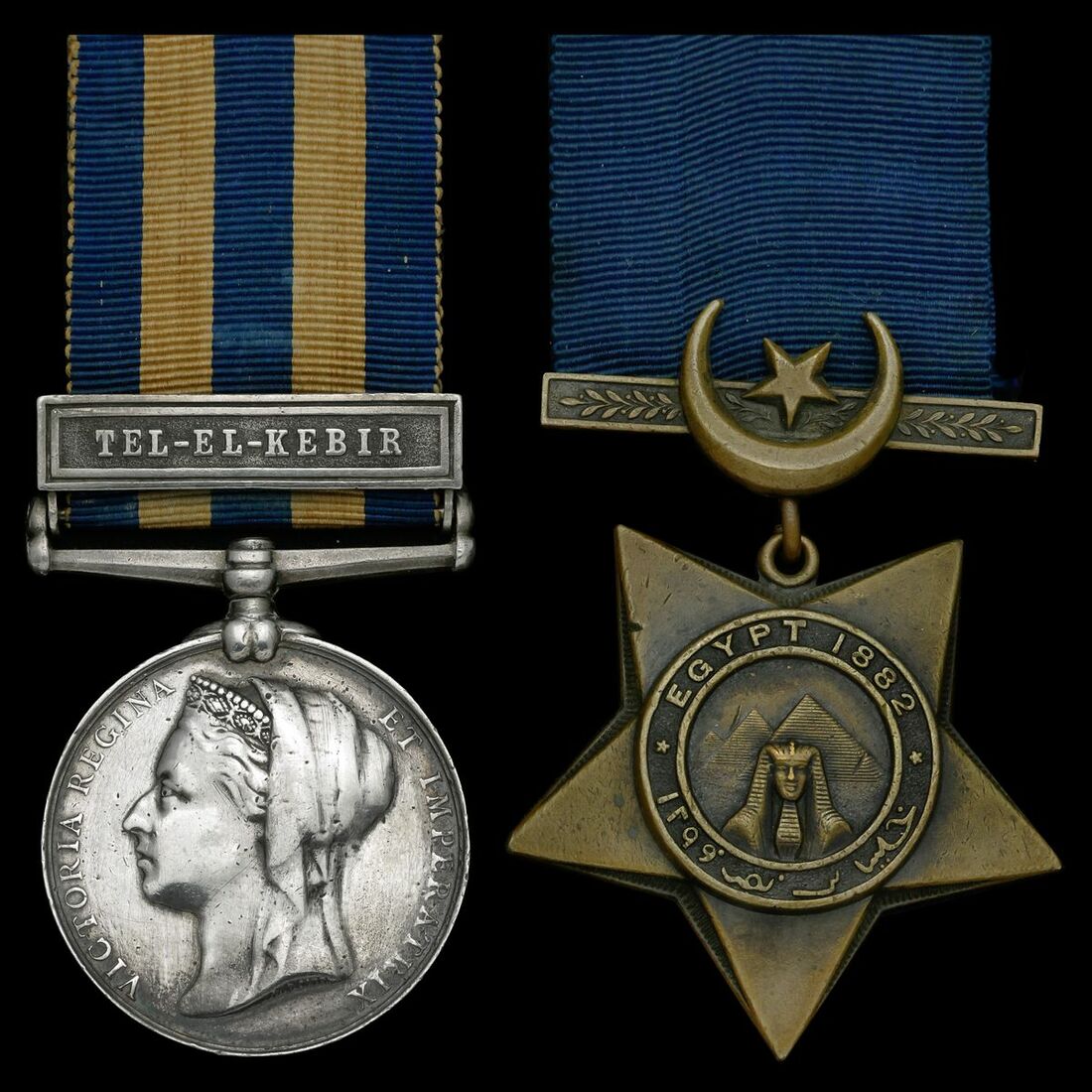 Egypt 1882-89, dated reverse, 1 clasp, Tel-El-Kebir (2655 Pte Evan Mills. 2/Y & L. Regt.), renamed; Khedive's Star 1882 (No 2665 Pte E Mills), engraved to the reverse, the first good fine, the second very fine (2)