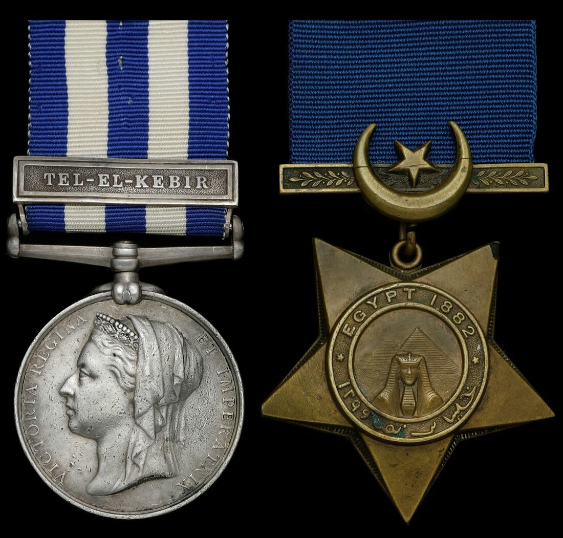 Taking part in the British victory at Tel-El-Kebir he was awarded good conduct pay from 9 January 1883 while still in Egypt. Returning to Britain on 28 April 1883 Howard fell back into old habits and once again found himself the cause of regular disciplinary problems. At some stage he contracted hepatitis which eventually proved to be fatal, he died at Sheffield, Yorkshire on 11 May 1889 while still in service; sold together with copied research comprising census data, service papers and a typed biographical note.