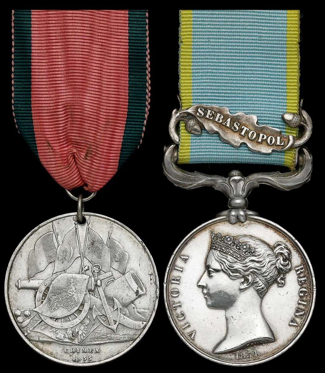 Crimea 1854-56, 1 clasp, Sebastopol (Corpl. C. Rolls. 90th Regt.), impressed naming; Turkish Crimea, British issue, unnamed as issued, overall very fine (2)