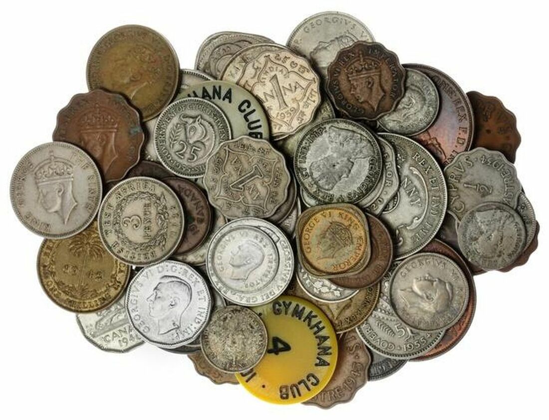 Selection of Commonwealth Coins and Tokens (56) | Australia, George V, (1910-1936), Penny, 1933 M (KM #23) Elizabeth II (1952-2022), Penny, 1953 M (KM #56); British East Africa, George V (1910-1936), Fifty Cents, 1924 (KM #9); George VI, (1936-1952), Shilling, 1941 (KM #28.1) British West Africa George VI (1936-1952), Shilling, 1938; 1942 (2), (KM #23); 1938 (KM #10b); Penny, 1933 (KM #9); Canada Victoria, (1837-1901), One Cent 1876 H (KM #7); George V (1910-1936), Ten Cents, 1914 (KM #23); Five Cents, 1935 (KM #29); George VI (1936-1952), Ten Cents, 1943 (KM #34); Five Cents, 1944; 1946 (KM #40a, #39a); One Cent, 1940; 1942; 1943; 1946 (KM #32); Cyprus, George V (1910-1936), Half Piastre, 1934 (KM #20); George VI, (1936-1952), Shilling, 1947, (KM #27); One Piastre, 1943; 1945; 1946 (KM #23a); Half Piastre, 1942; 1943; 1944; 1945 (KM #22a); Elizabeth II (1952-2022), One Hundred Mils, 1955 (KM #37); Fifty Mils, 1955 (KM #36); Twenty Five Mils, 1955 (KM #35); Five Mils, 1955 (KM #34); Gibraltar, Victoria, (1837-1901), Two Quarters, 1842, (KM #3); Malaya, George VI, (1936-1952), Twenty Cents, 1948 (KM #9); India | East India Company, Victoria, (1837-1901), Quarter Anna, 1858, (KM #463.2); India | British India, George V, (1910-1936), One Rupee, 1919 (KM #524); Four Annas, 1920 (KM #519); One Anna, 1936 (KM #513); George VI, (1936-1952), Half Rupee, 1939 (2), (KM #549); Quarter Rupee, 1947 (KM #548); Two Annas, 1940 (KM #541); One Anna, 1939; 1942 (KM #537, 537a); Half Anna, 1942 (KM #534b.2); India | Tokens Gymhkhana Club, 10 Hinaidi; 4 Hinaidi; New Zealand, George VI, Half Crown, 1937, (KM #11); South Africa, George V, (1910-1936), Sixpence, 1934, (KM #16.2); Threepence, 1925; 1932, (KM #17.2, 17.3); George VI (1936-1952), Sixpence, 1938 (KM #27); Threepence, 1938, 1939, 1940 (KM #26); Penny, 1942 (2) (KM #25); an attractive selection ranging from very fine to extremely fine, pleasant toning and clear strike on the better examples (56)