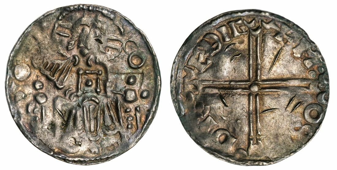 (x) The Leja Park Collection | Denmark, Sven Estridsen (1047-1085), Penny, Lund, Mosedredic, Christ enthroned, rev. + M : OS[E]DR : EDIC, voided long cross, pellet at centre, 10h, 0.84g (Hauberg 6), lightly crimped and smoothed in parts, peck marked to the reverse, with a rich tone, very fine