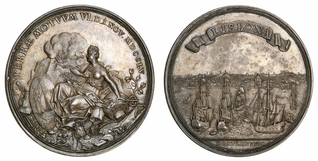 (x) Portugal, Earthquake of Lisbon, AR Medal, 1755, by L.G. Holtzhey, struck in Holland, TERRAE MOTVVM VI.
