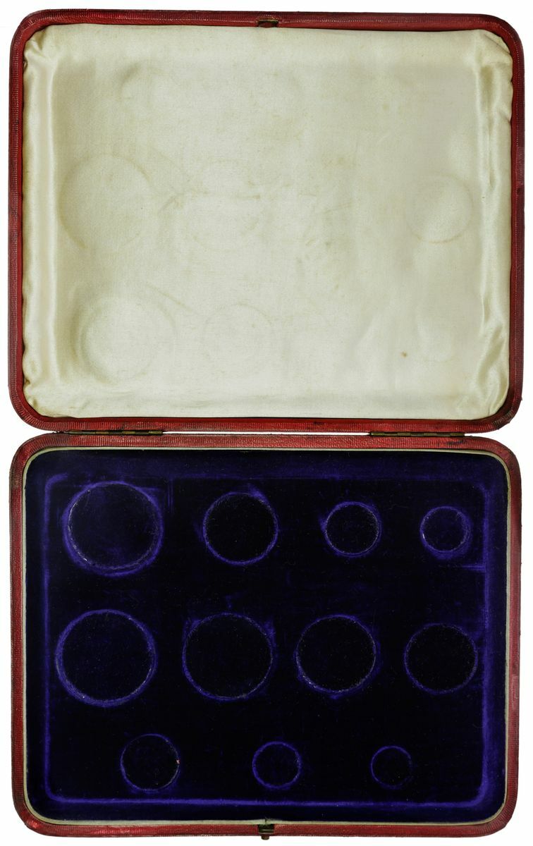 ROYAL MINT COIN BOXES | Victoria (1837-1901), Official 'Golden Jubilee' Proof Set 11-Coin Case, 1887, two superficial cracks to the bottom of the case and some other signs of wear to the exterior, interior lining in very good order, in fully working order