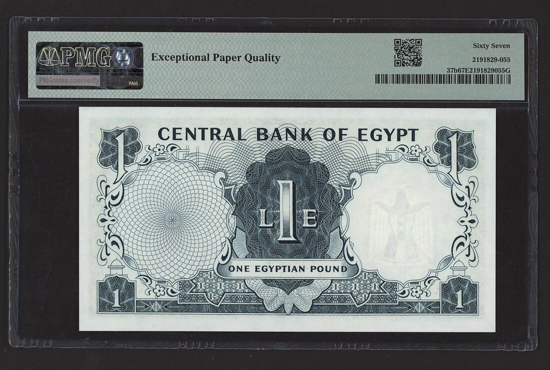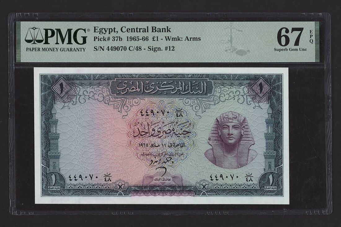Central Bank of Egypt, £1, 1965-66, serial number 449070 C/48, (Pick 37b, BNB 303), in PMG holder 67 EPQ Superb Gem Uncirculated, only 2 notes in higher grades at PMG