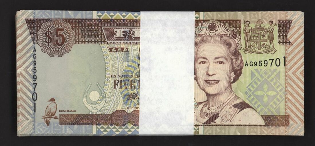 Reserve Bank, Fiji, [100 notes] $5, ND (2002), consecutive serial numbers AG959701-800, (Pick 105, BNB 516), uncirculated (100 notes)