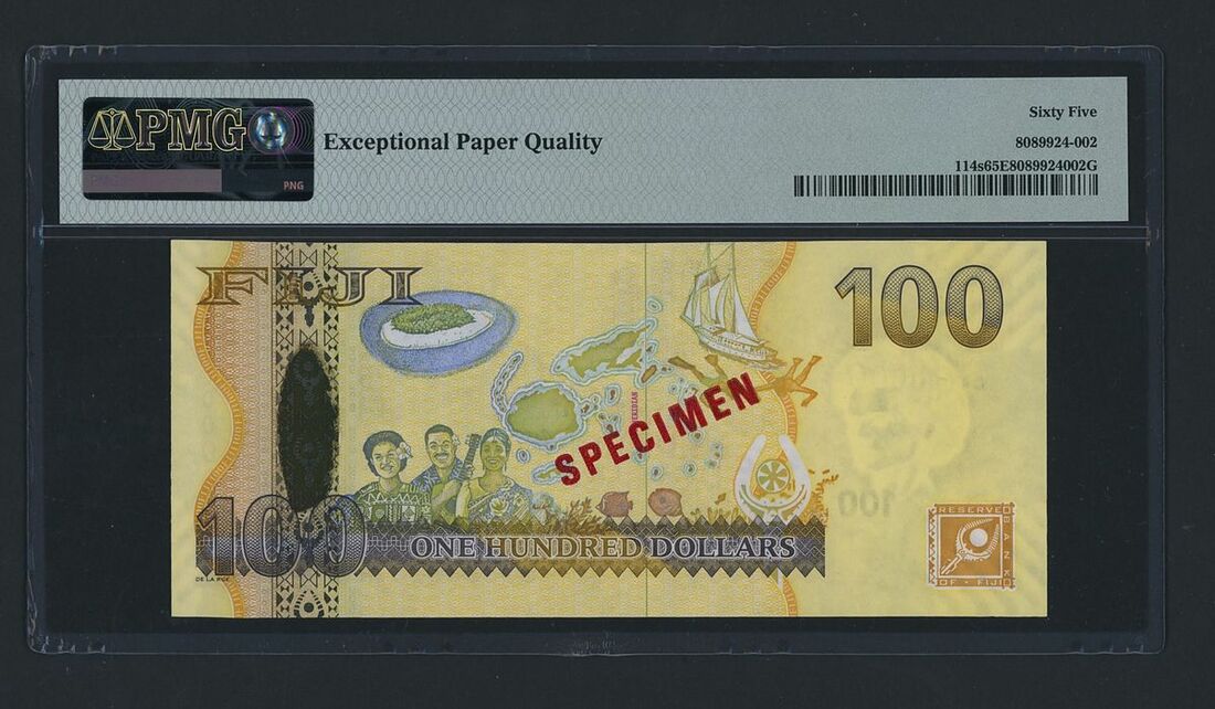 (x) Reserve Bank, Fiji, specimen 100 Dollars, ND (2007), serial number CA 000000, (Pick 114s, TBB B525s), in PMG holder 65 EPQ Gem Uncirculated