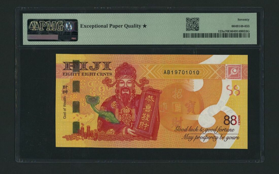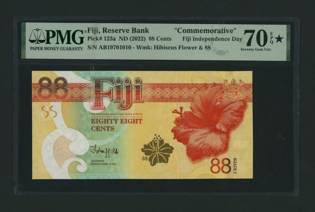 Reserve Bank, Fiji, [Top Pop] 88 Cents, ND (2022), serial number AB19701010, commemorative note for Fiji Independence Day