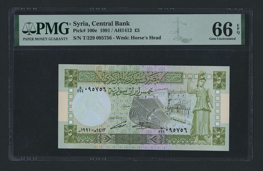 France, Switzerland, Syria, [3 notes] 50 Francs, 10 Franken, £5, 1942-1991, France: 50 Francs, 8th January 1942, serial number W.162 67916; Switzerland: 10 Franken, 6th January 1977, serial number 97B 005882; Syria: £5, 1991, serial number T/229 095756