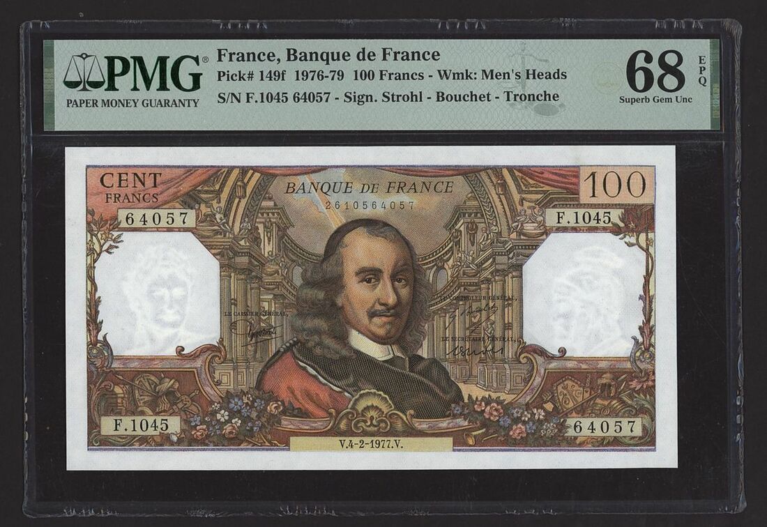 Banque de France, [Top Pop] 100 Francs, 4th February 1977, serial number F.1045 64057, (Pick 149f, BNB 1007), in PMG holder 68 EPQ Superb Gem Uncirculated, single finest graded at PMG
