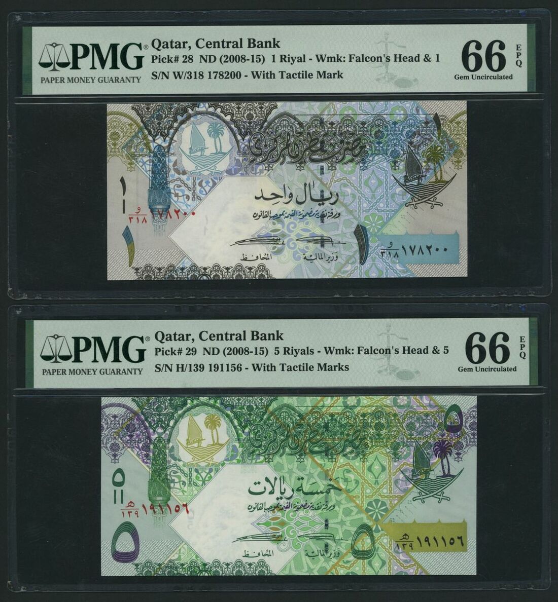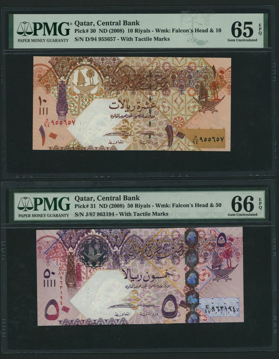 (x) Qatar Central Bank, [4 notes] Complete set of the 2008-2015 Issues, 1 Riyal, ND (2008-15), serial number W/318 178200