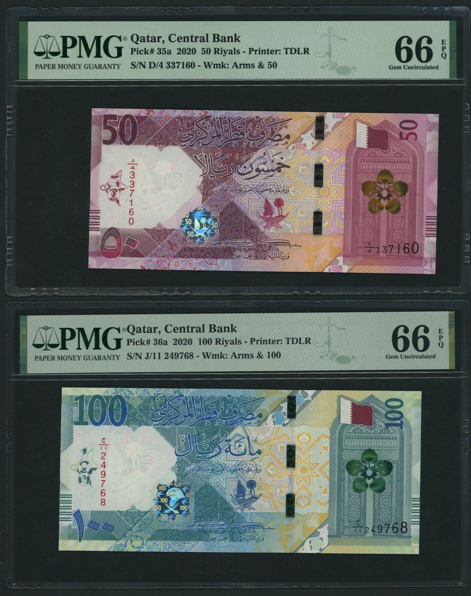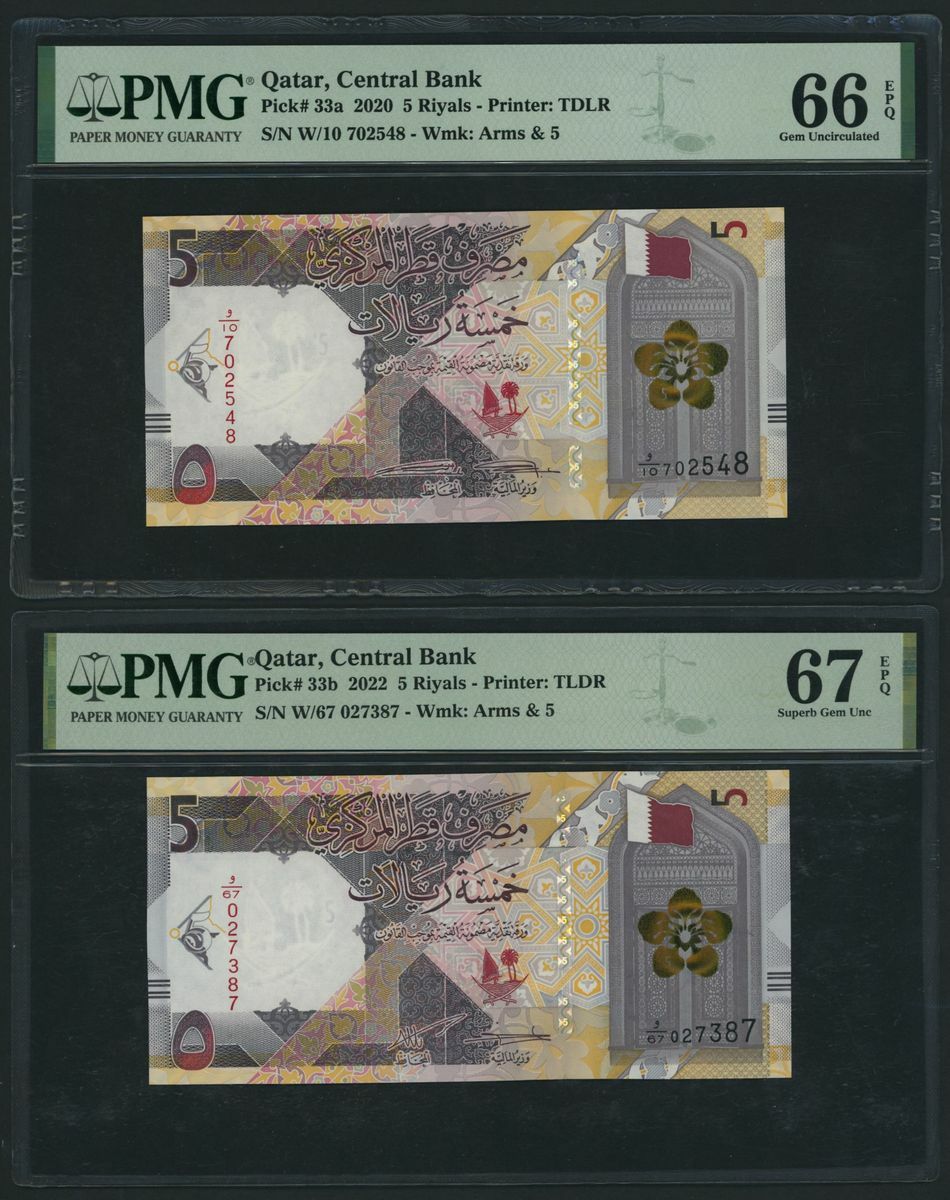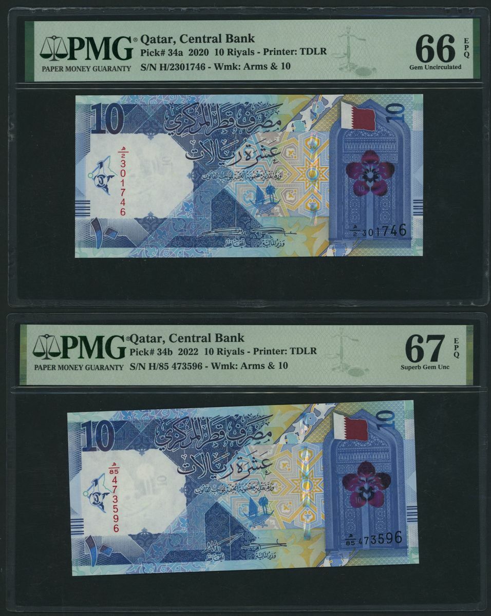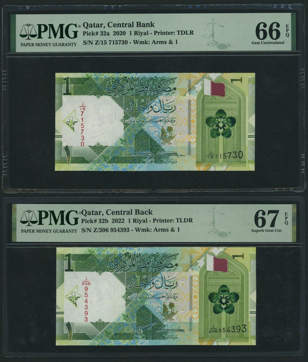 (x) Qatar Central Bank, [9 notes] Group from the 2020-2022 Issues, 1 Riyal, 2020, serial number Z/15 715730,