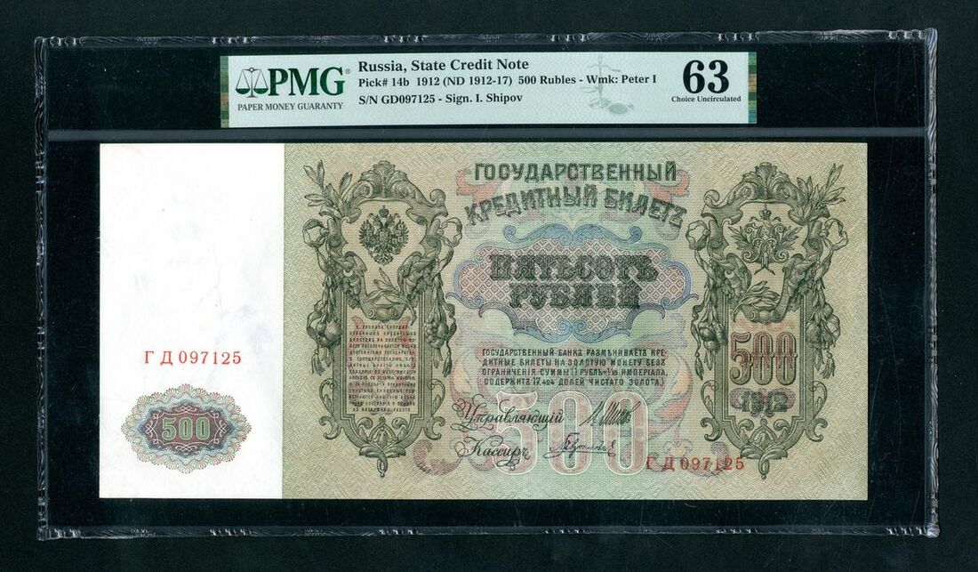 (x) State Credit Note, Russia, [3 notes] 500 Rubles, 1912, serial numbers DG 097125, 097126, 097129