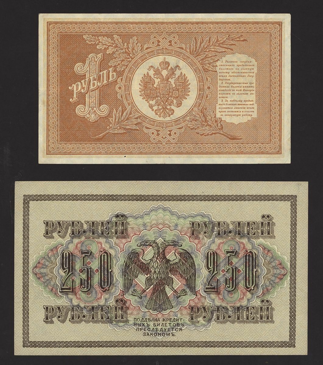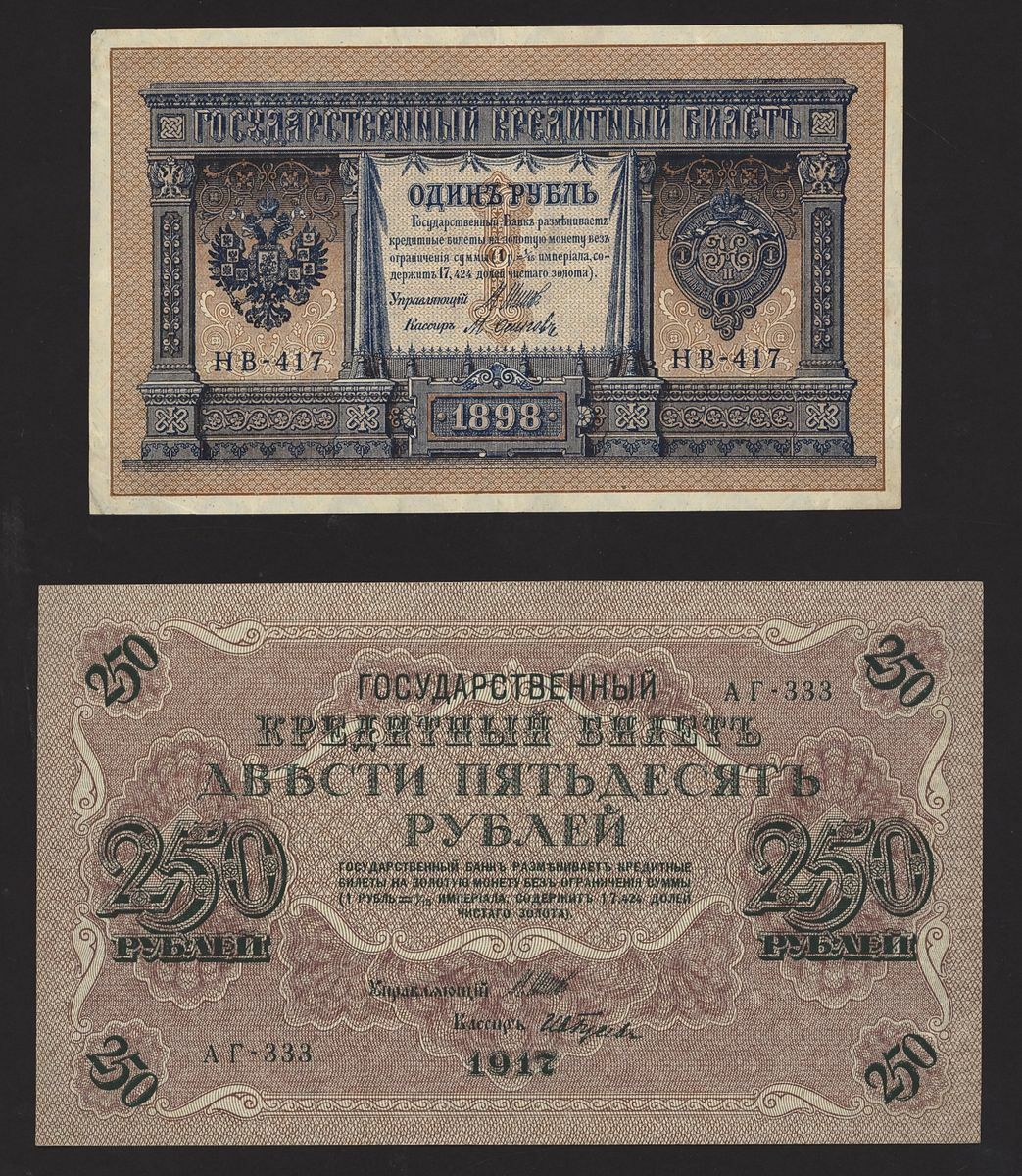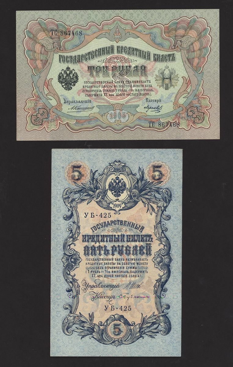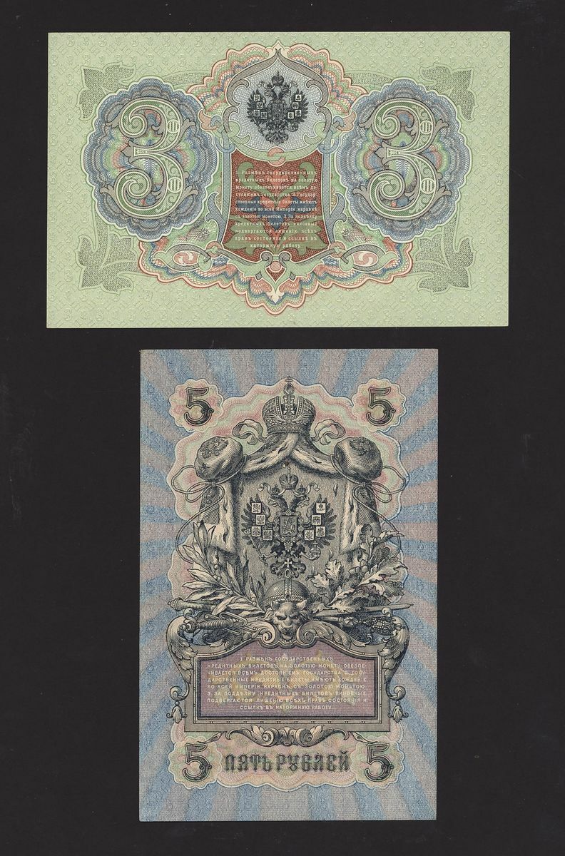 Collection of Russian notes [9 notes] (Pick 9, 10, 11, 12, 12, 13, 15, 36, 37), extremely fine to about uncirculated (9 notes)
