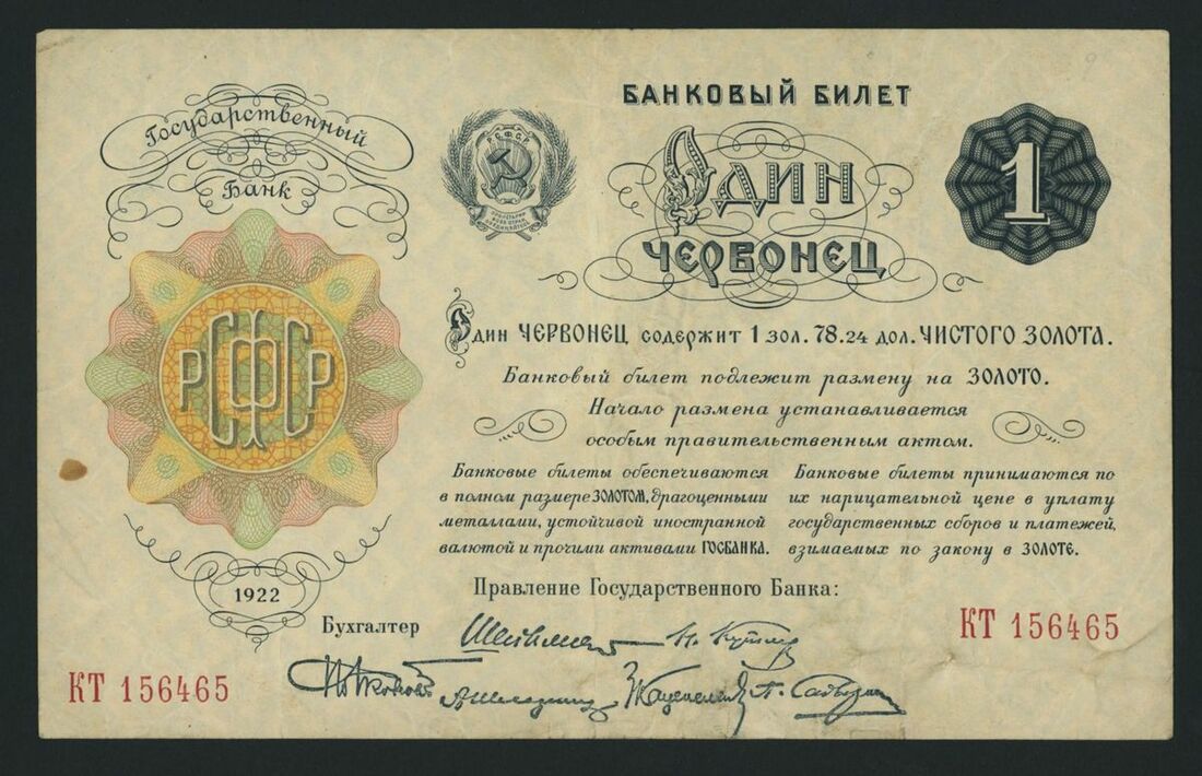Soviet State Banknotes, 1 Chevronetz, 1922, serial number KT 156465, (Pick 139a) very fine, scarce