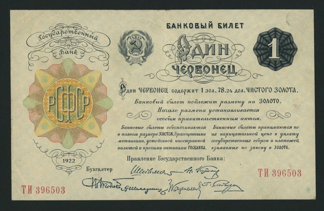 Soviet State Banknotes, 1 Chevronetz, 1922, serial number TI 396503, (Pick 139a) very fine, scarce
