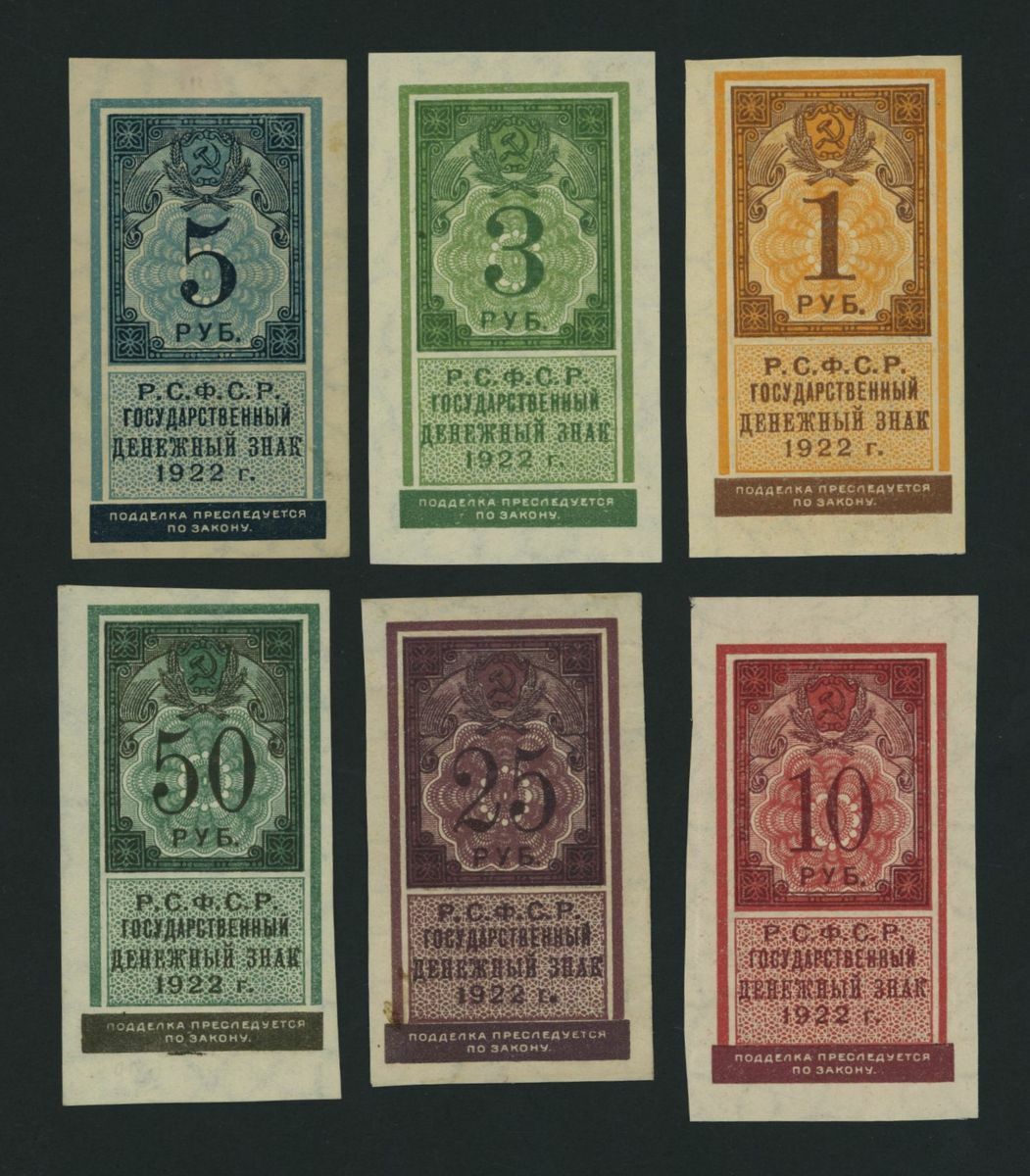 Soviet State Currency Notes, [6 notes] 1, 3, 5, 10, 25, 50 Rubles, 1922, (Pick 146, 147, 148, 149, 150, 151), about uncirculated (6 notes)