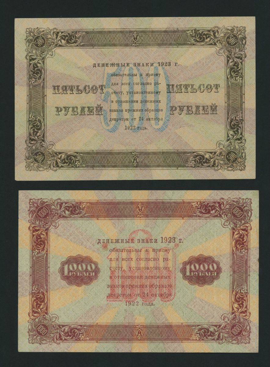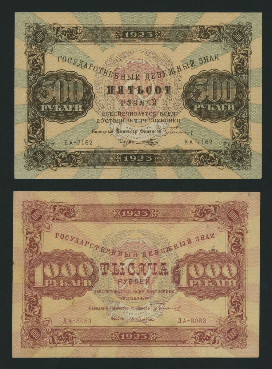 Soviet State Currency Notes, [3 notes] 500, 1000, 5000 Rubles, 1923, serial numbers: EA 7162 (P169); DA 8083 (P170); JAE 9110 (P177)