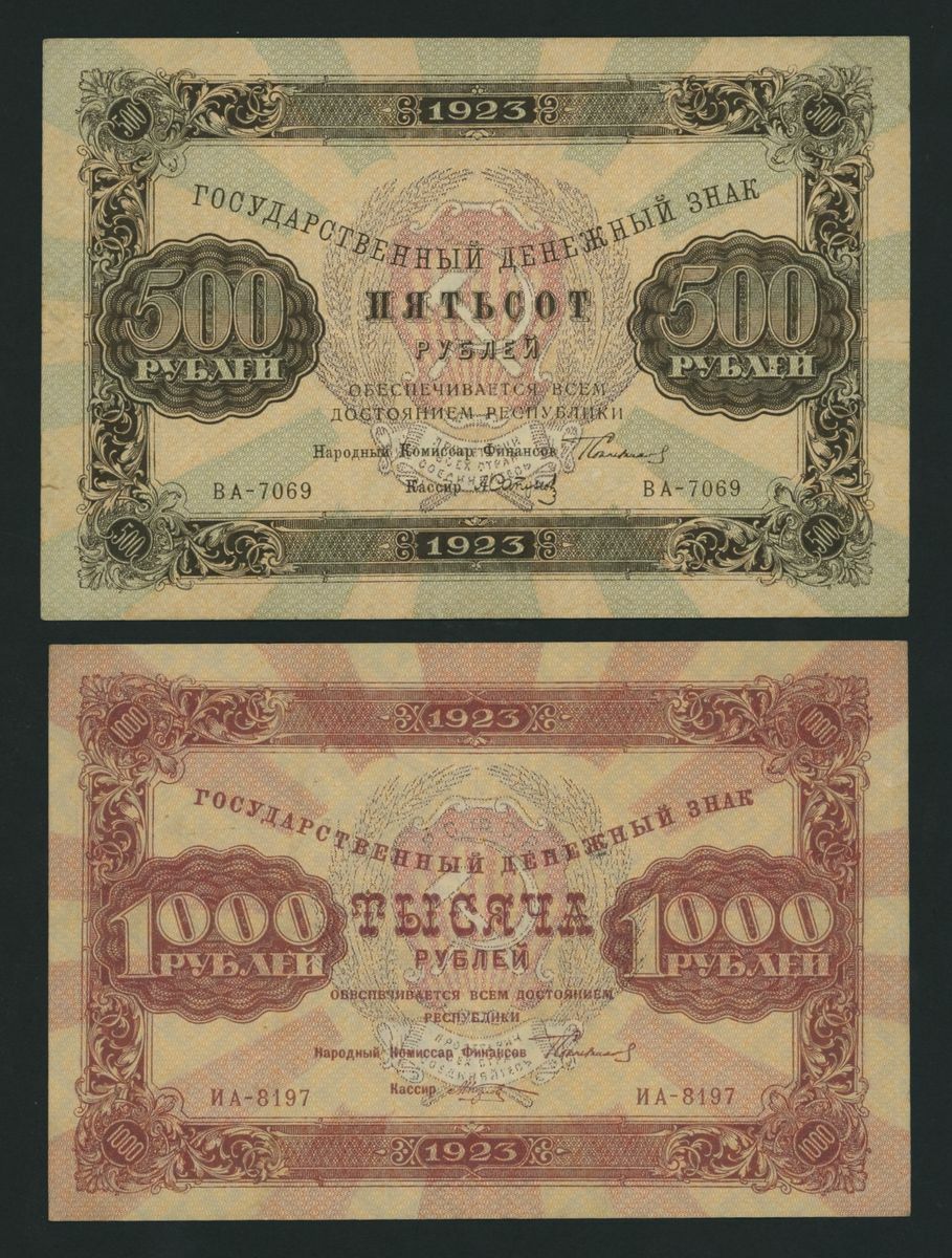 Soviet State Currency Notes, [3 notes] 500, 1000, 5000 Rubles, 1923, serial numbers: VA 7069 (P169); IA 8197 (P170); JAE 9156 (P171)