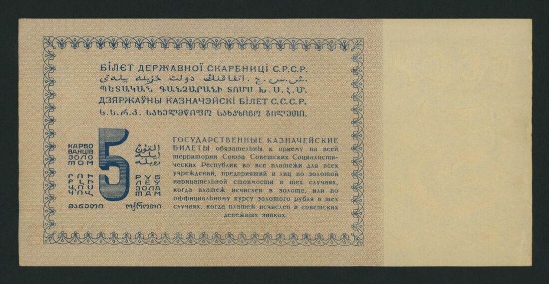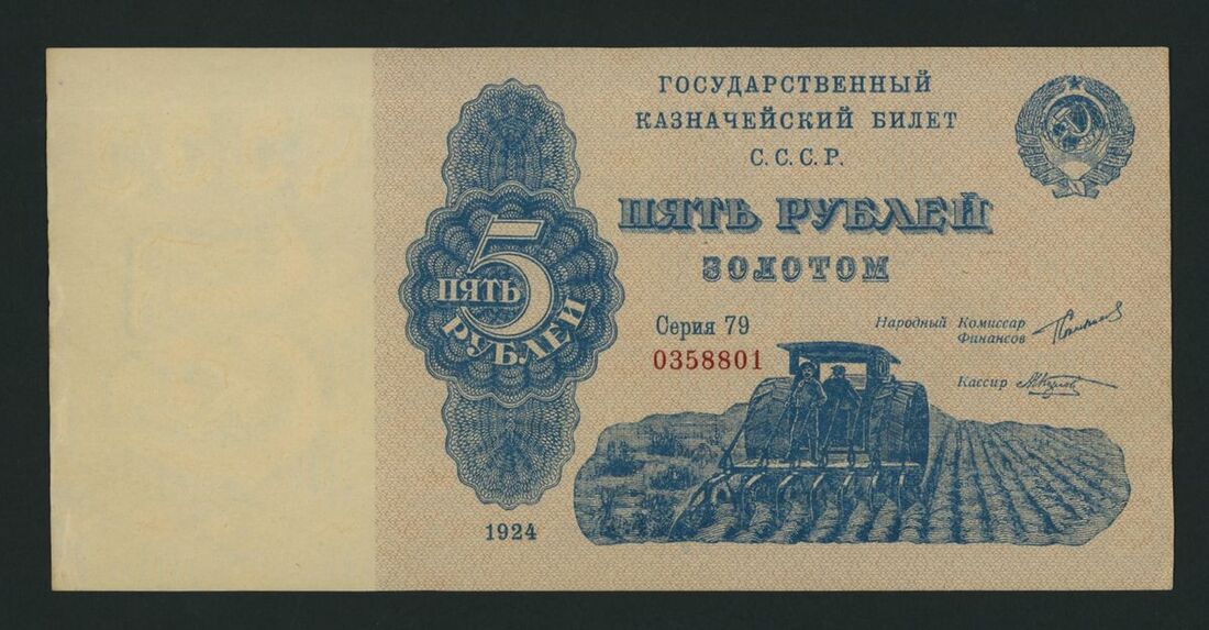 Soviet State Currency Notes, 5 Gold Rubles, 1924, serial number 0358801, (Pick 188), good extremely fine, scarce