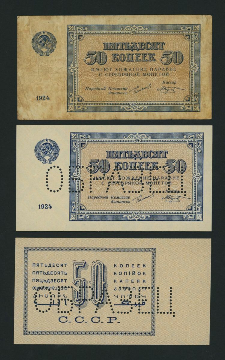 Soviet State Currency Notes, [3 notes] 50 Kopek, 1924, (Pick 196, 196s), very fine to about uncirculated (3 notes)