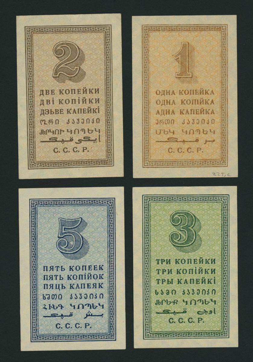 Soviet State Treasury Note, [4 notes] 1, 2, 3, 5 Kopeks, 1924, (Pick 191, 192, 193, 194), about uncirculated, scarce (4 notes)