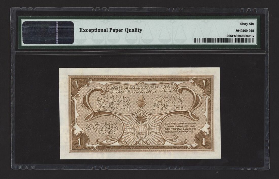 (x) Monetary Agency, Saudi Arabia, 1 Riyal, ND (1956), serial number 36/872935, Haj Pilgrim Receipt,