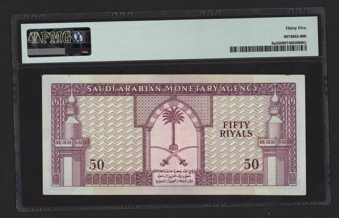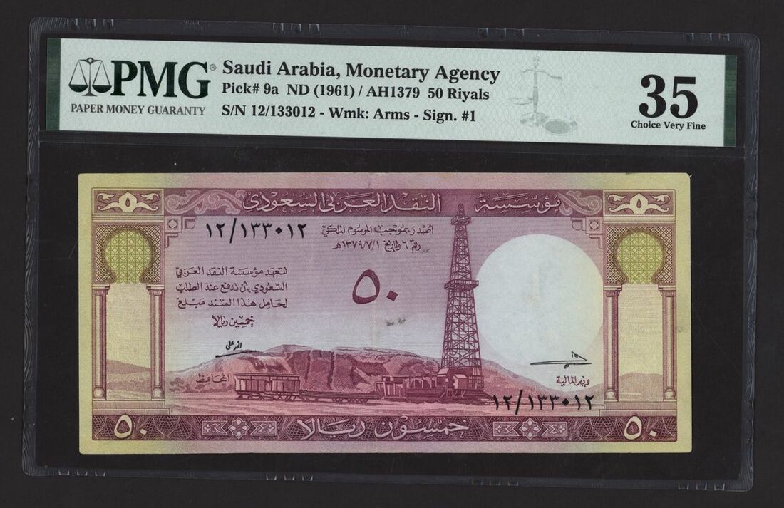 (x) Monetary Agency, Saudi Arabia, 50 Riyals, ND (1961), serial number 12/133012, (Pick 9a, BNB 108), in PMG holder 35 Choice Very Fine