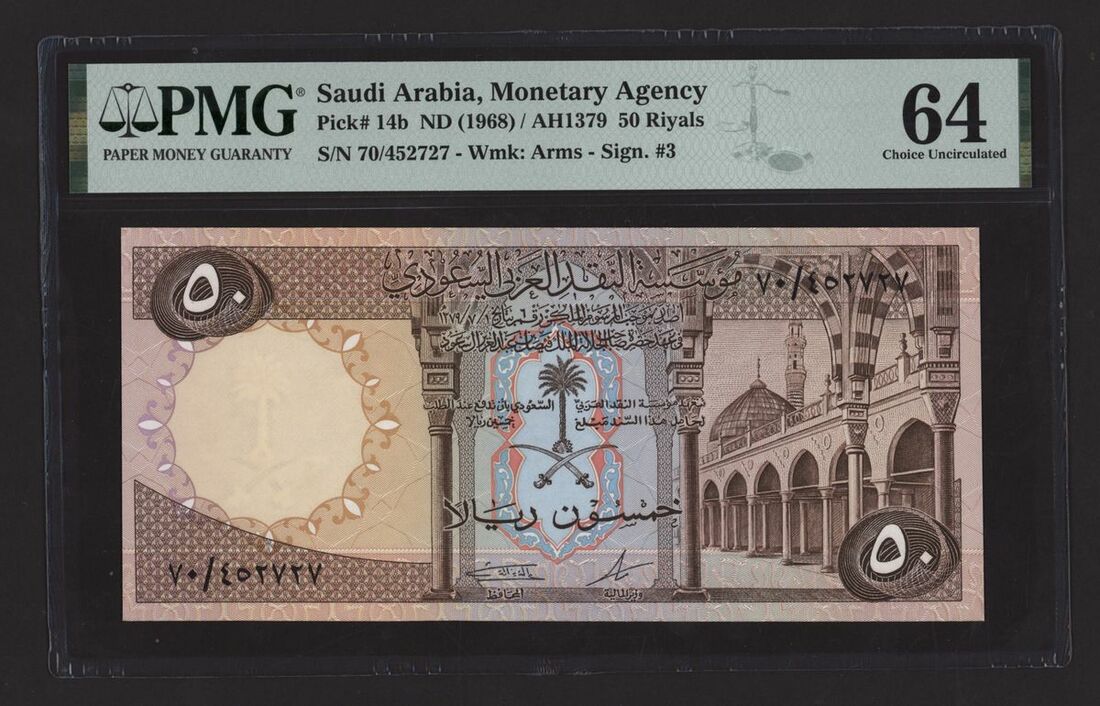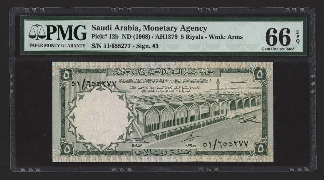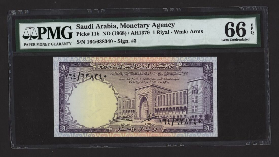 (x) Monetary Agency, Saudi Arabia, [3 notes] Group from the second Issues, Law 1.7.AH1379 (1968), 1 Riyal, ND (1968), serial number 164/638340,