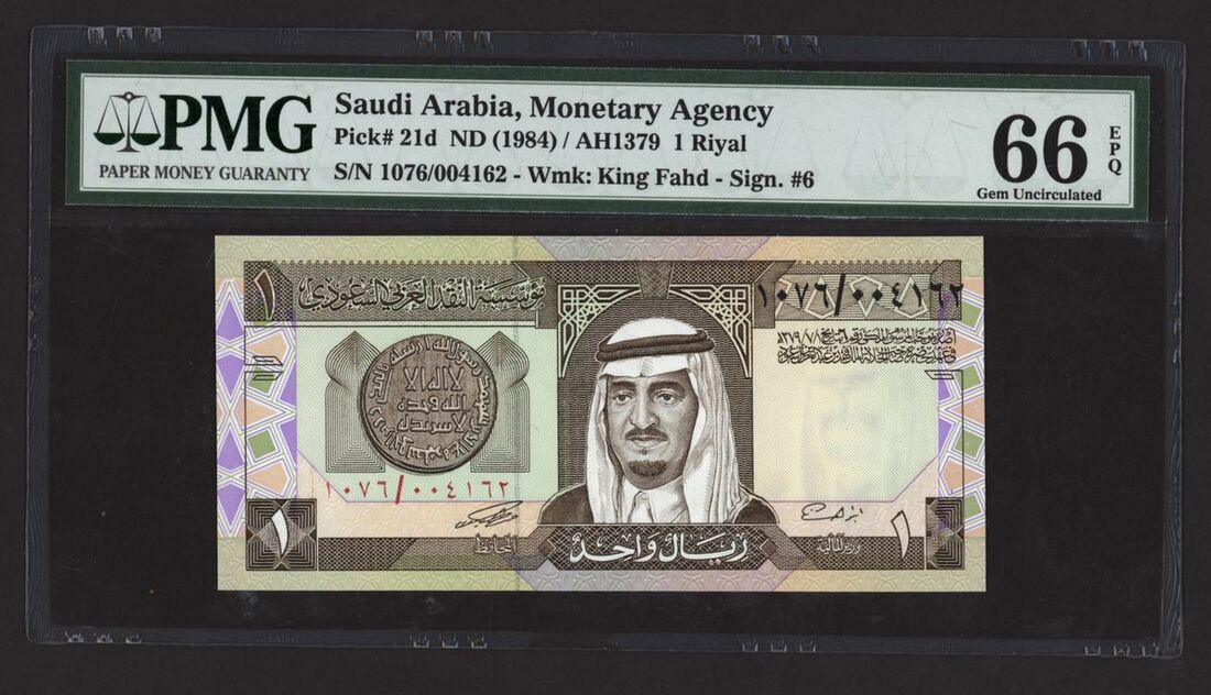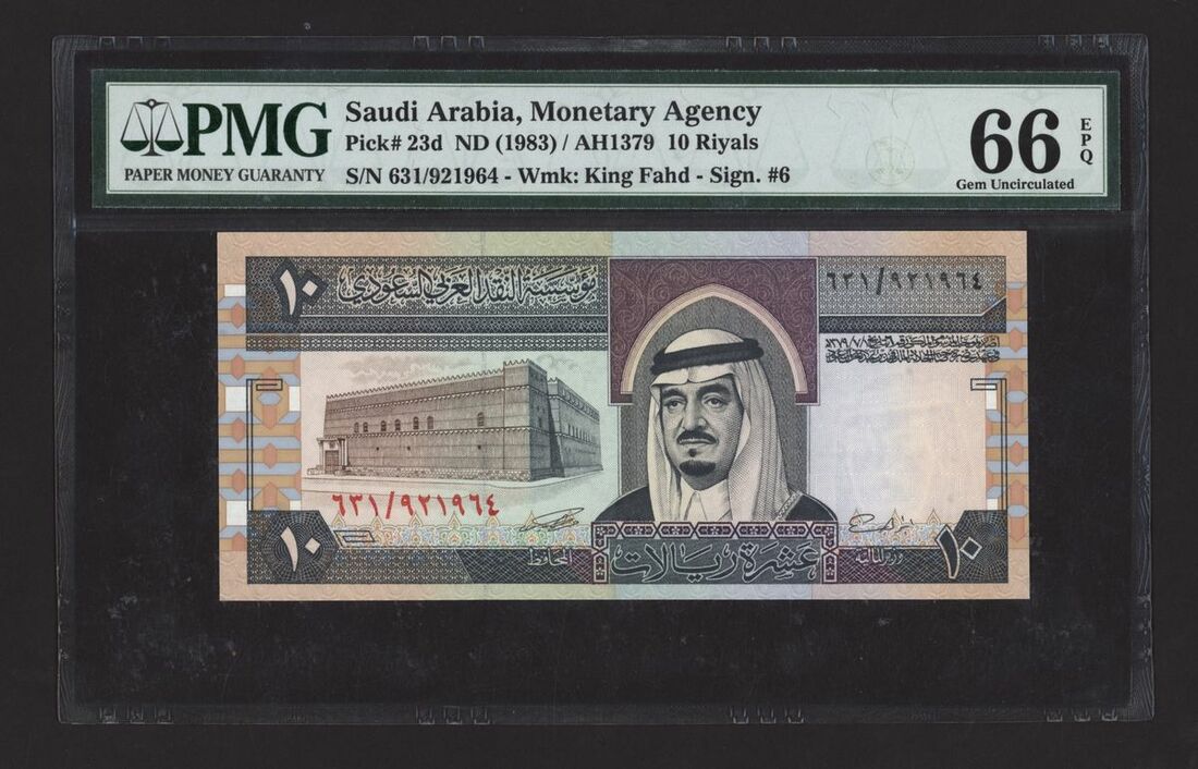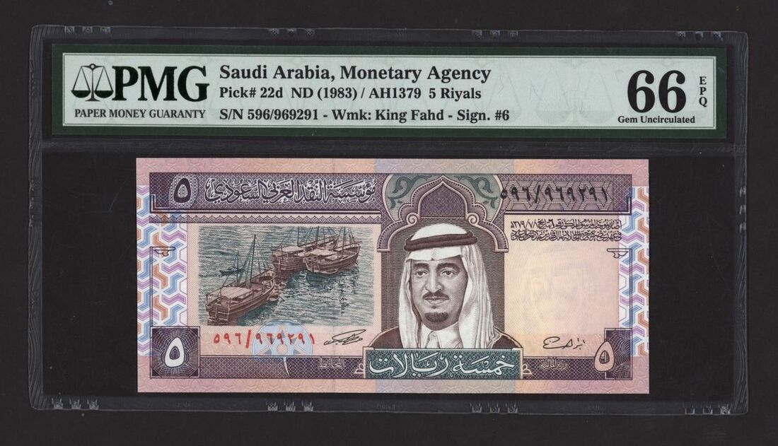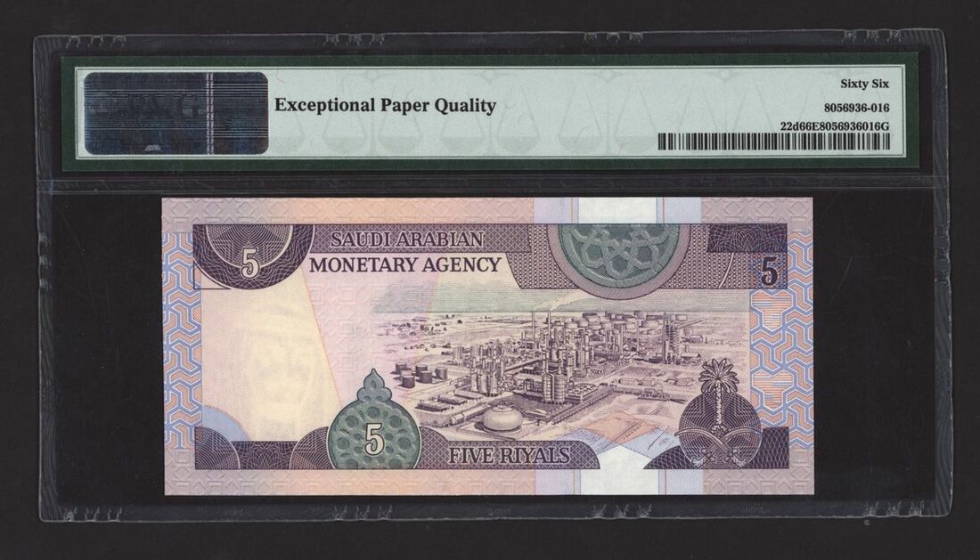 (x) Monetary Agency, Saudi Arabia, [6 notes] 1976-2016, 5 Riyals, ND (1977), serial number 55/132051,