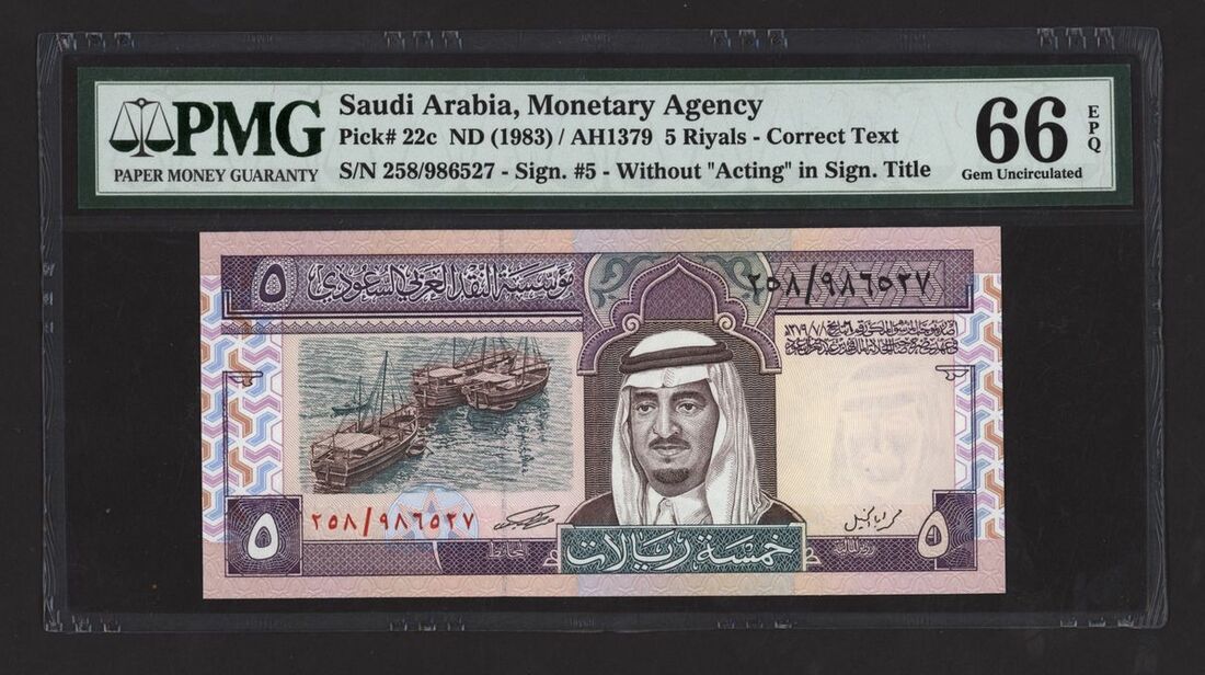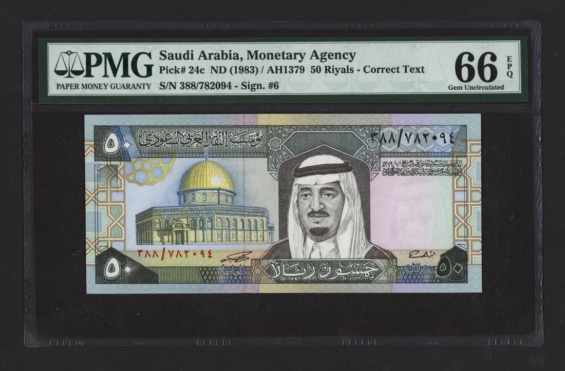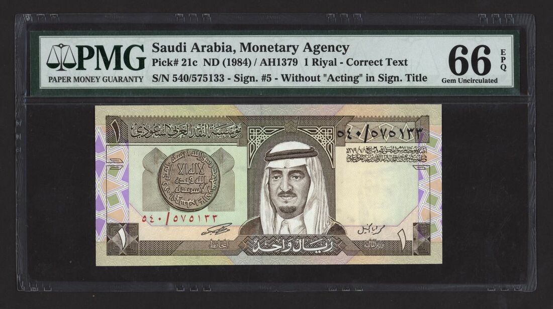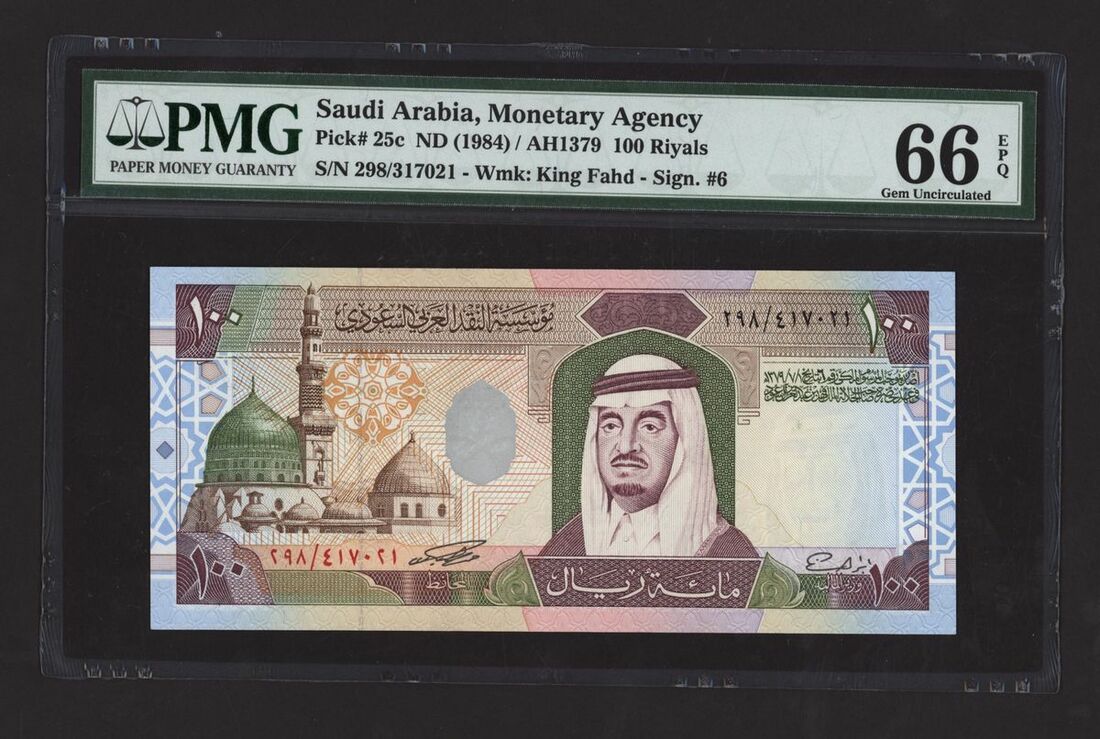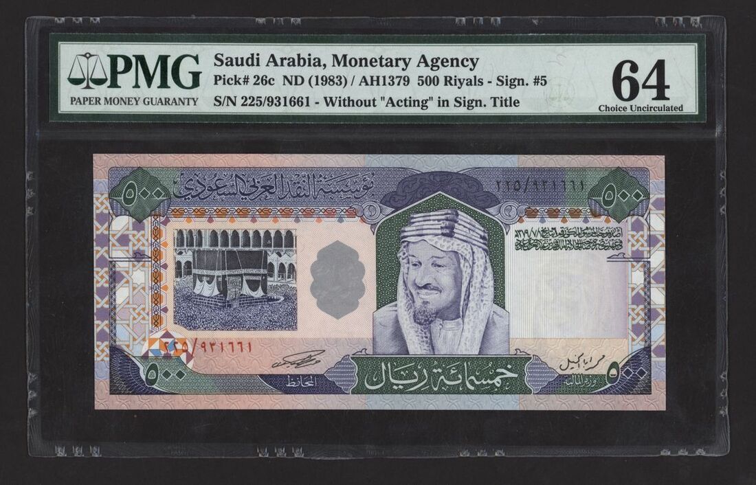 (x) Monetary Agency, Saudi Arabia, [6 notes] Complete set of the fourth Issues, Law 1.7.AH1379 (1984), 1 Riyal, ND (1984), serial number 540/575133,