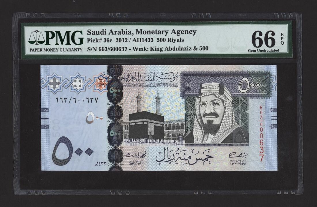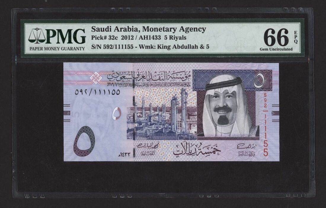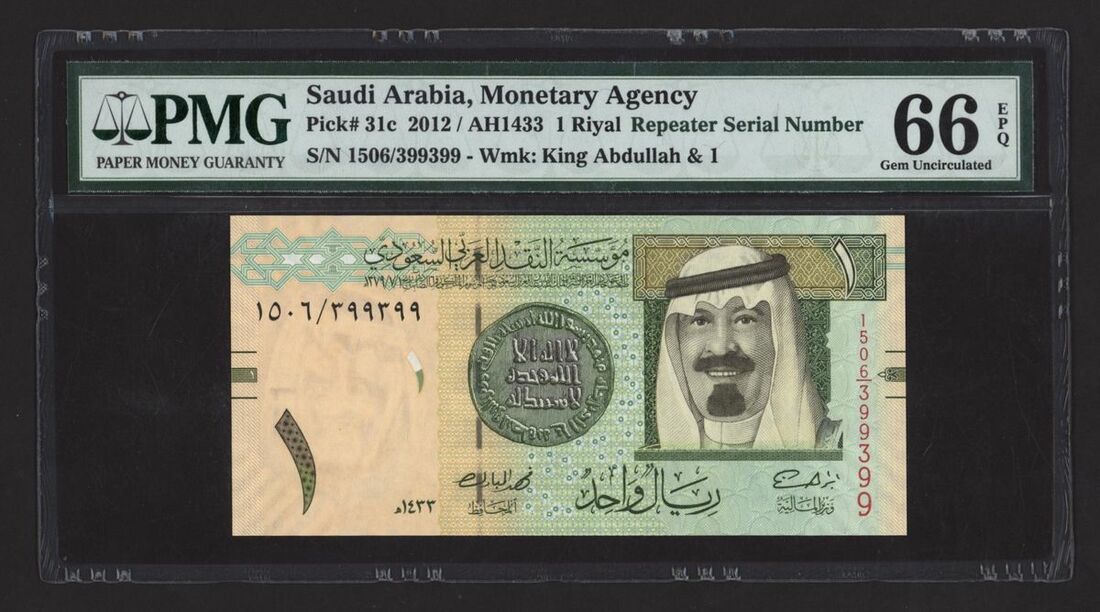 (x) Monetary Agency, Saudi Arabia, [6 notes] Complete set of the 2007-2016 Fifth Issues printed in 2012, 1 Riyal, 2012, Repeater serial number 1506/ 399399,
