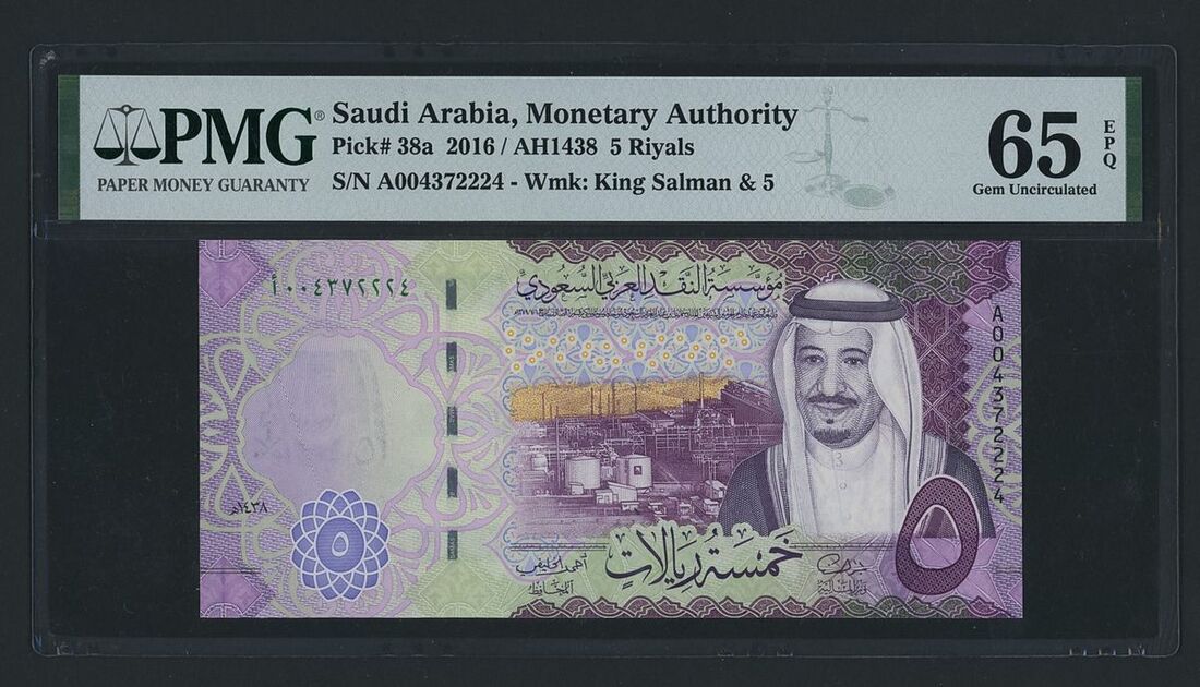 5 Riyals, 2016, serial number A004372224